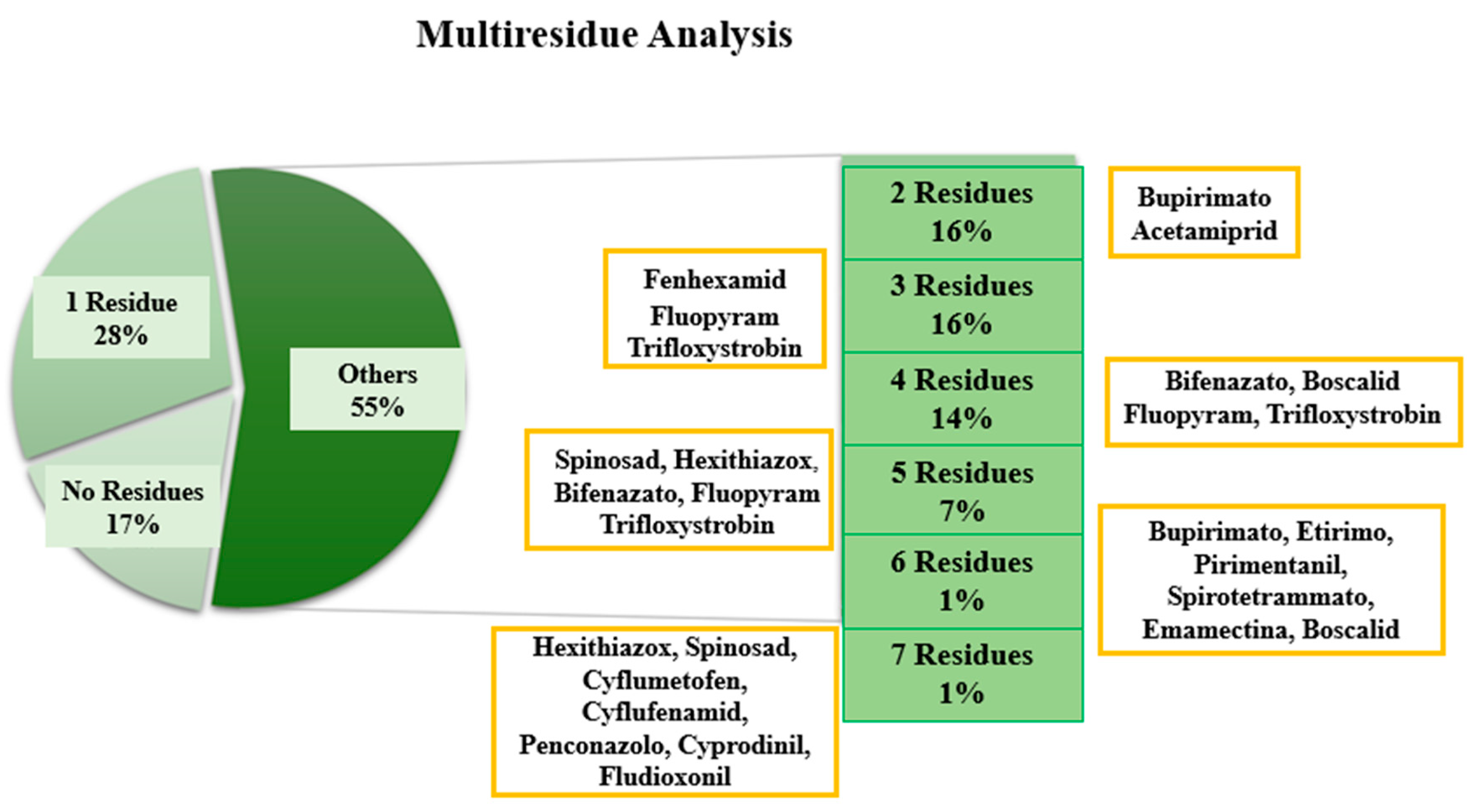 - Sample I4: Presence of 6 residues, including Spirotetramat with an MRL exceedance of 113%.