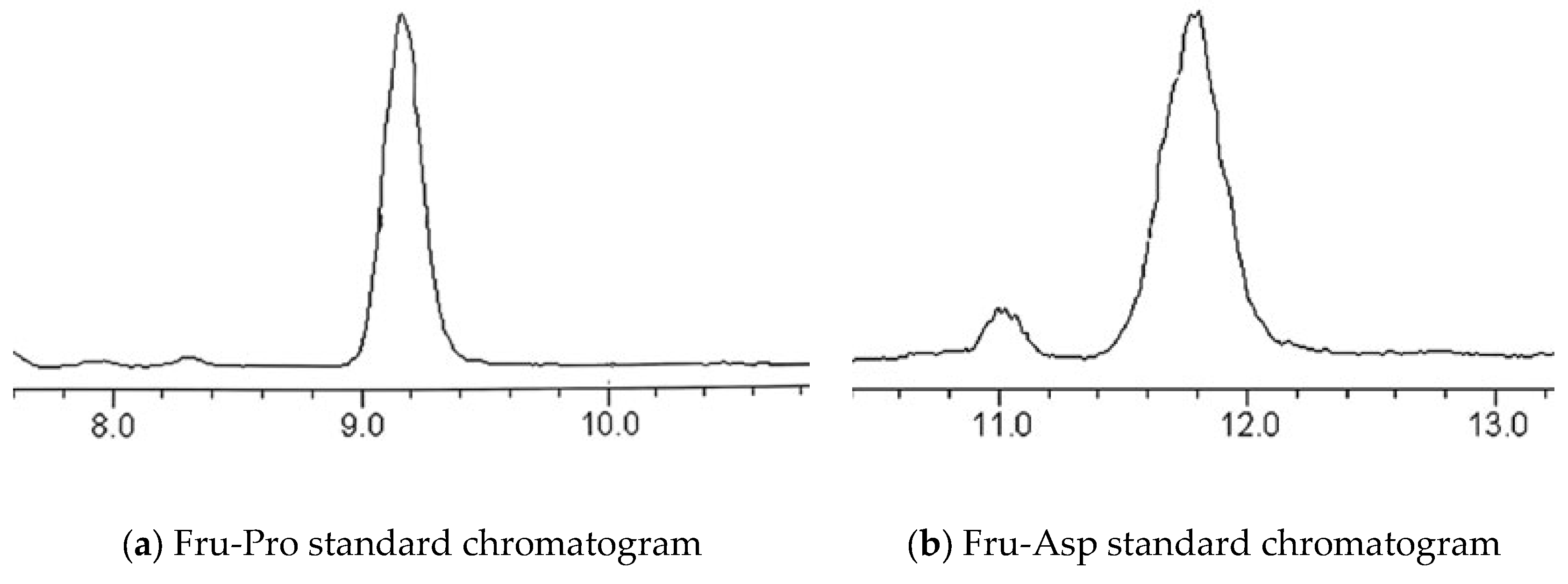The Fru-Pro standard was dissolved in ultrapure water and diluted to 250 μg/mL. Fru-Asp was dissolved in ultrapure water and diluted to 10 μg/mL. HPLC-ELSD detection was performed according to the chromatographic conditions of