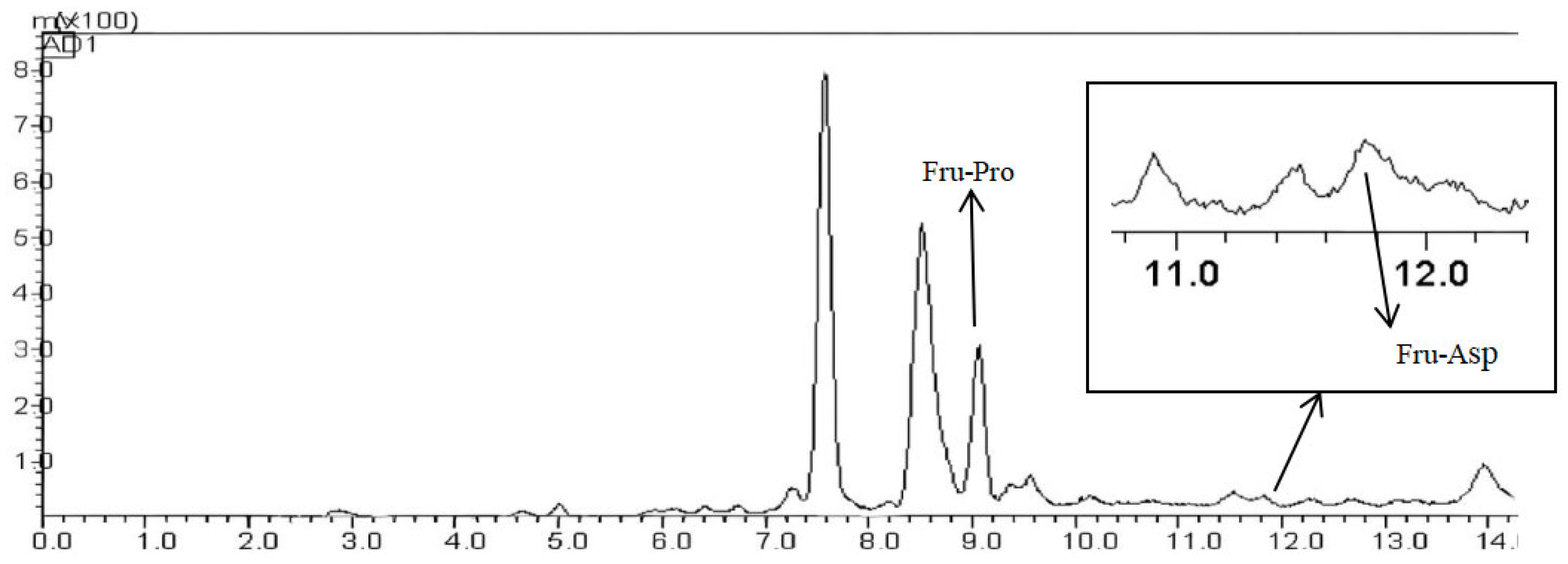 In this study, we established an HPLC-ELSD method for the detection of Fru-Pro and Fru-Asp, screened a