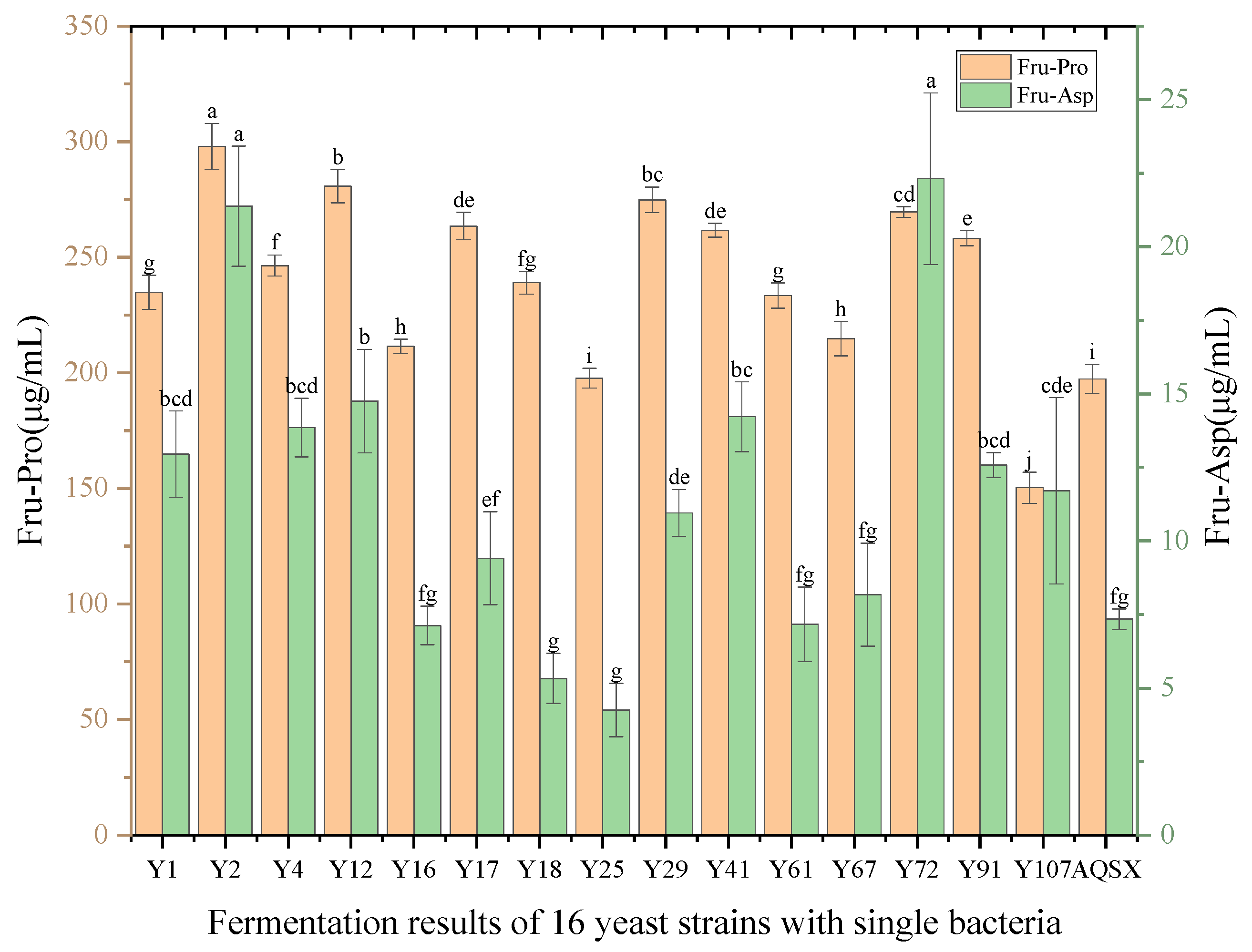 y-axis and the standard concentration of Fru-Pro and Fru-Asp as the