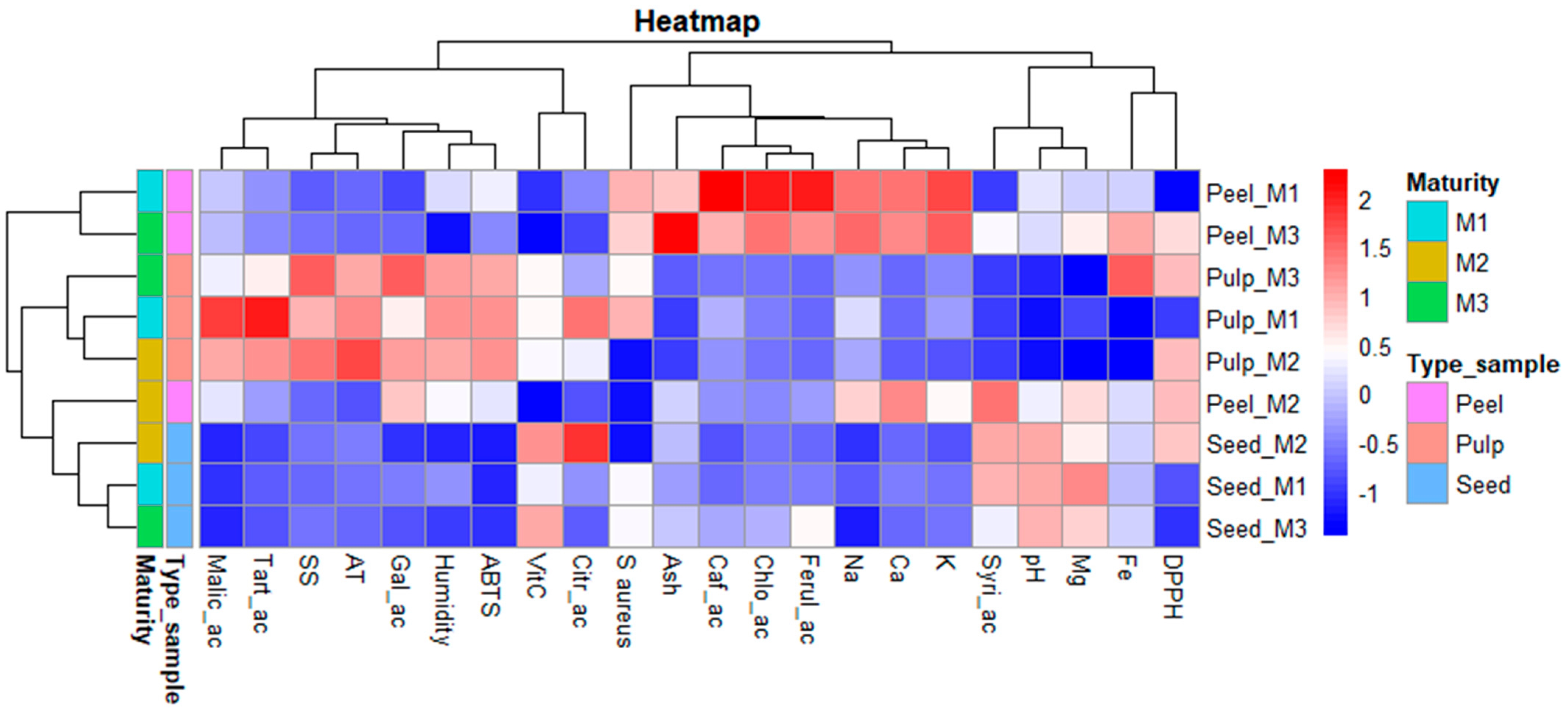 Coyago-Cruz E, Méndez G, Zúñiga-Miranda J, Jami N, Acurio-Vásconez R, Heredia-Moya J. Dynamics of Bioactive Compounds and Their Relationship with Antioxidant and Antimicrobial Activity in the Pulp, Peel, and Seeds of ‘Salak’ During Ripening. Foods. 2025; 14(20):3476. https://doi.org/10.3390/foods14203476