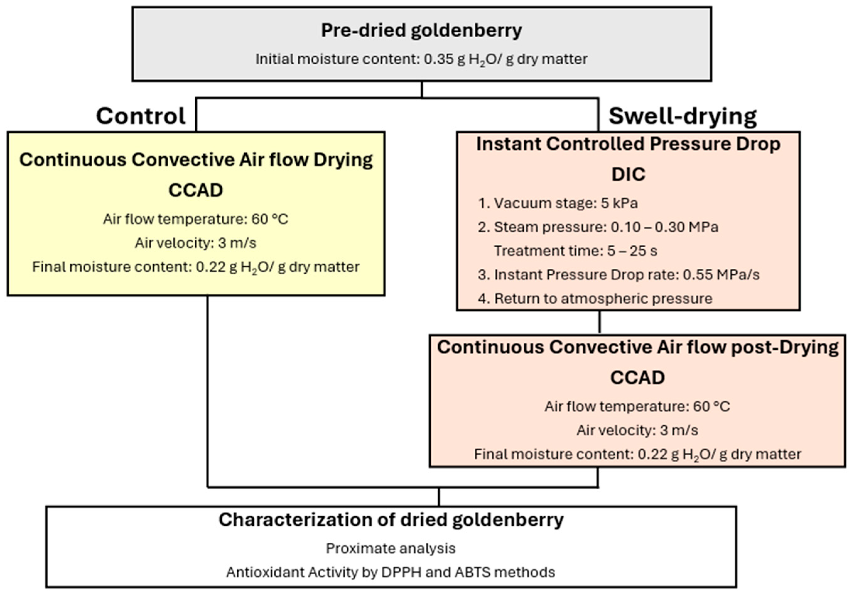 66]. During the instant controlled pressure drop step, the system immediately undergoes autovaporization, causing quick expansion, which creates a porous structure and rapidly cools biological matrices. This cooling protects thermosensitive compounds, and the porous structure enhances the extraction of active molecules, both significantly increasing the nutritional value of dried foods. Moreover, IHAD can prevent the degradation of thermosensitive molecules by significantly reducing the exposure time of fruits to high temperatures. This study also showed that DIC treatment could boost the antioxidant activity of dried lucuma and goldenberry, with IHAD offering an innovative pre-drying process to enhance the nutritional quality of dried fruits.