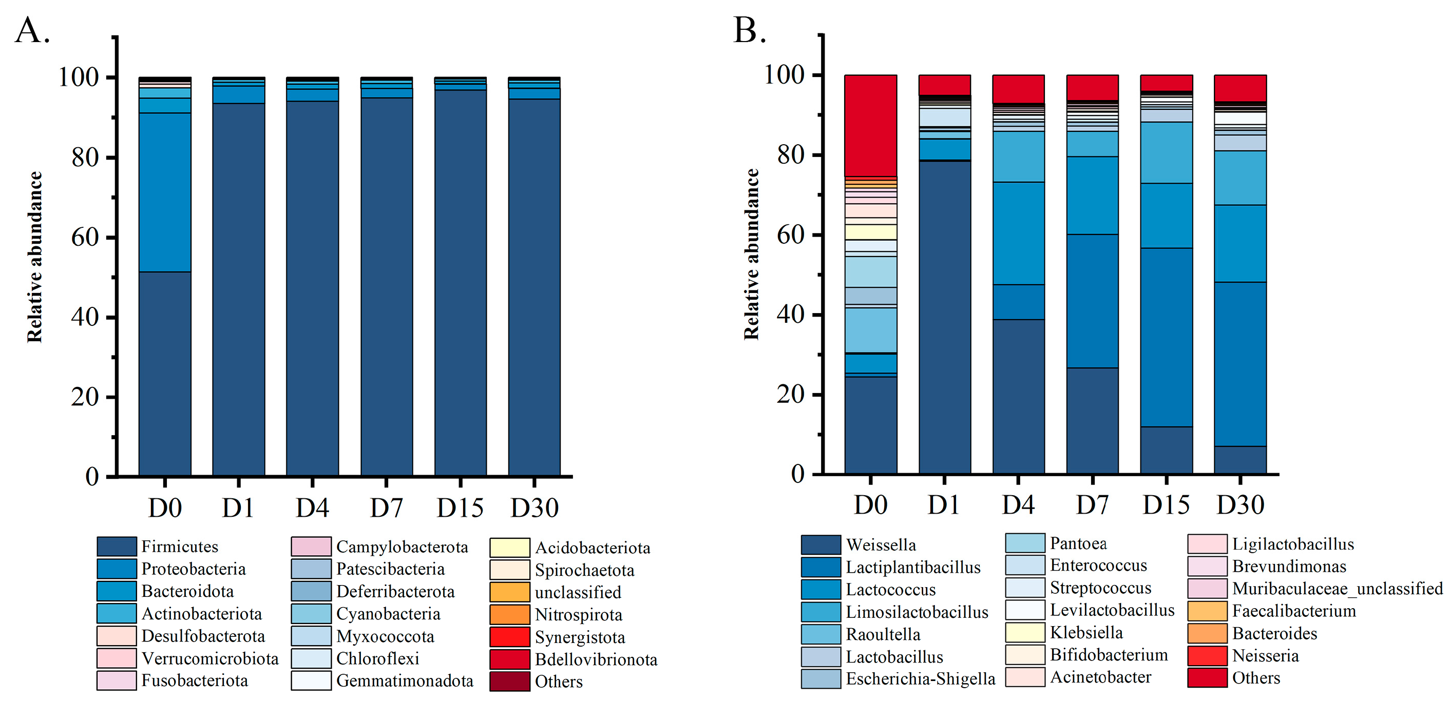 3.2. Representative Bacteria of Different Fermentation Stages of Sour Bamboo Shoots