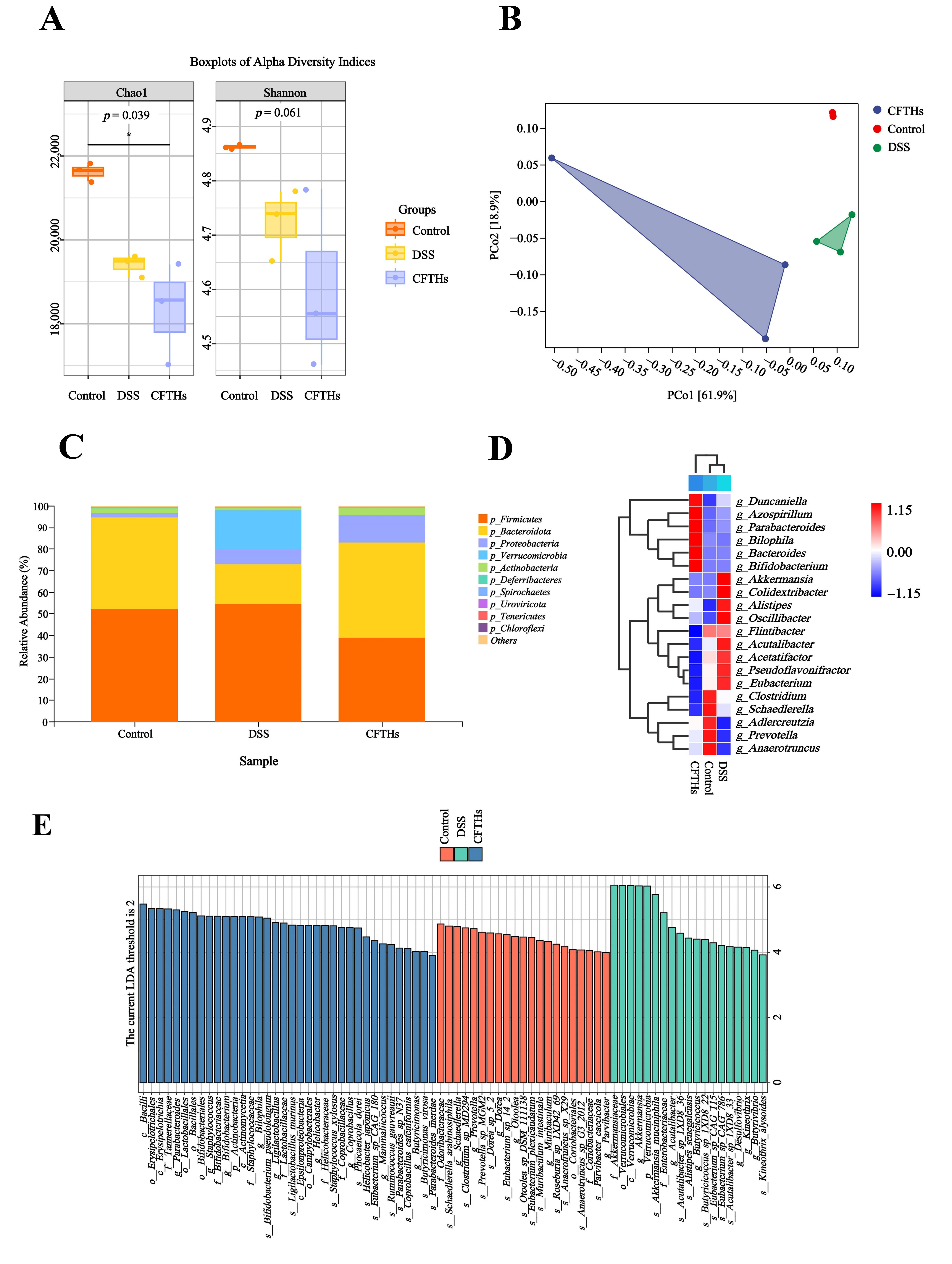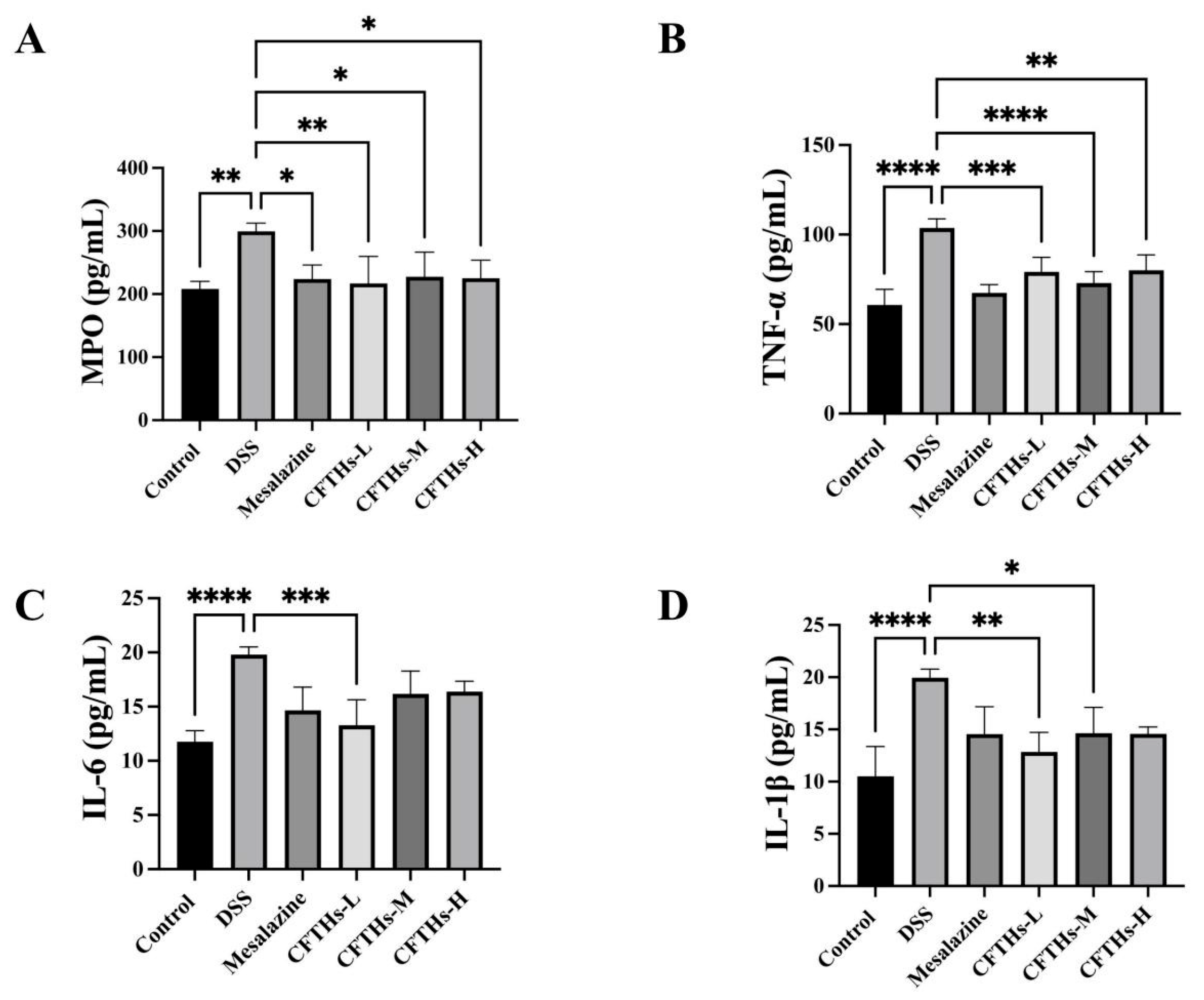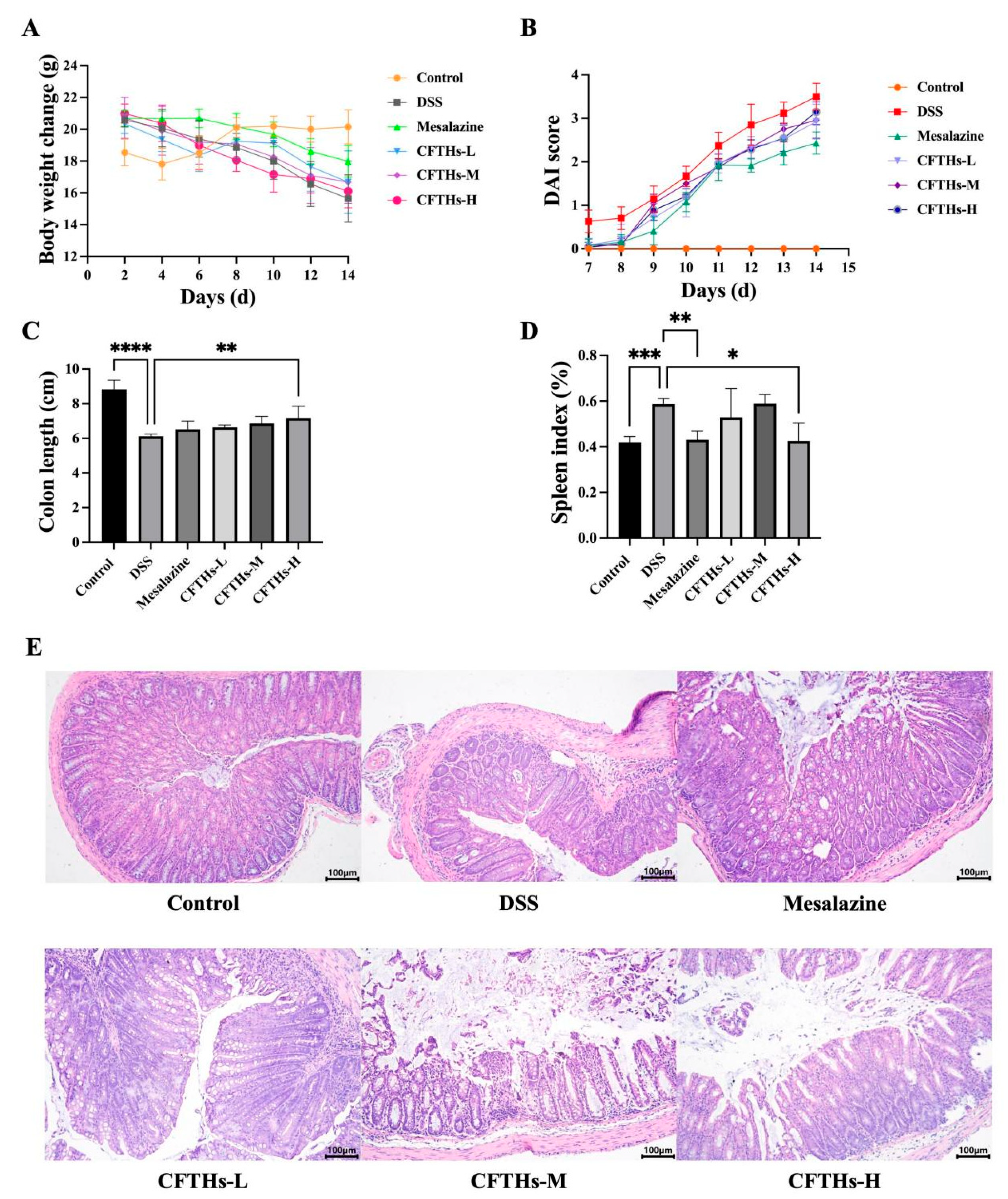 3.2. CFTHs Alleviated the Symptoms of DSS-Induced Colitis
