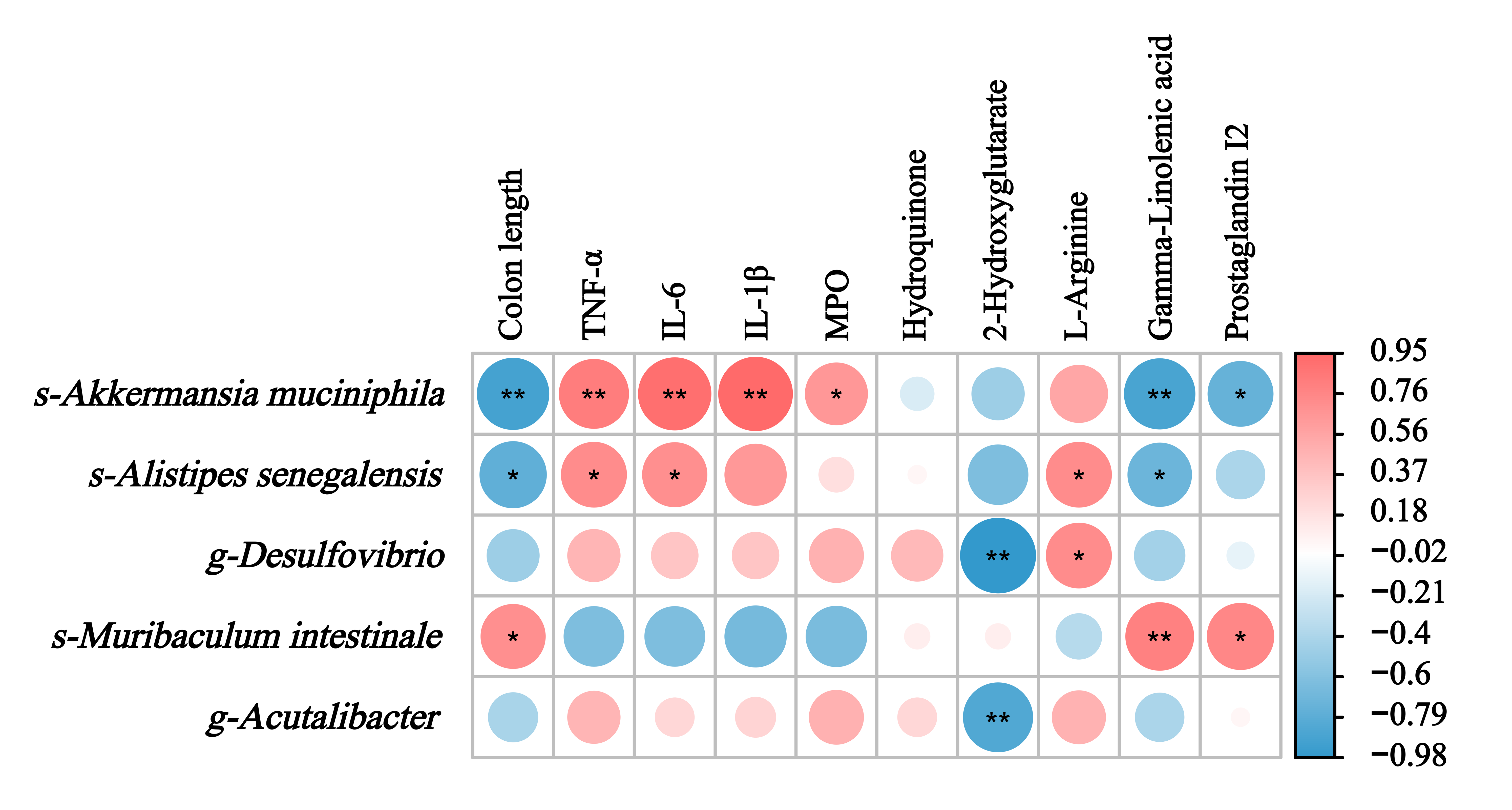 Chicago/Turabian StyleZhang, Senyu, Qiuting Wang, Shunmin Gong, Mingbo Li, Yu Zhang, Leilei Sun, and Liqin Sun. 2025. "The Effect of Cucumaria frondosa Tentacles Hydrolysates on Dextran Sulfate Sodium-Induced Colitis: Integrated Metagenomics and Metabolomics Analysis" Foods 14, no. 20: 3483. https://doi.org/10.3390/foods14203483