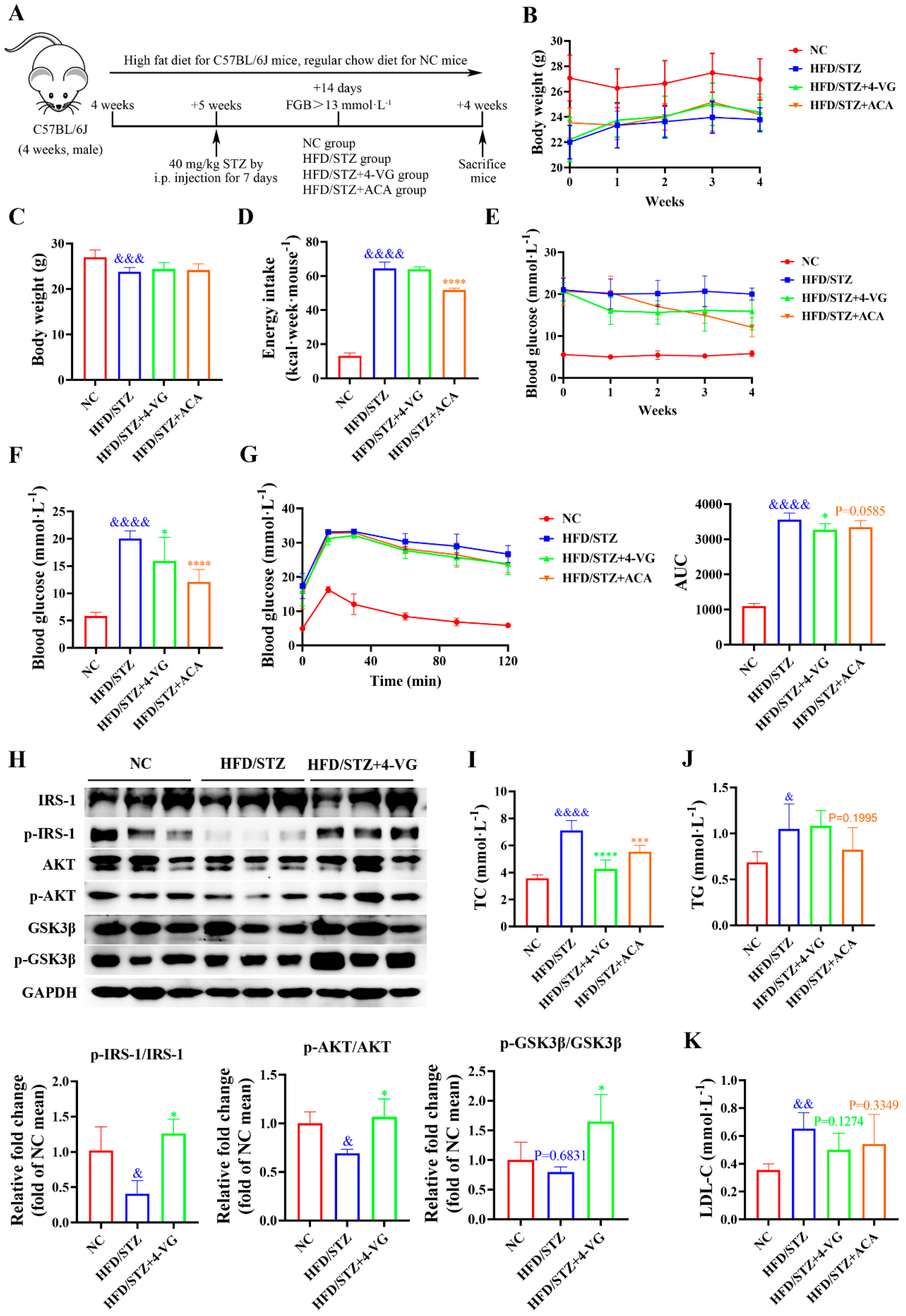 3.4. 4-VG Exhibited Anti-Diabetic Effects on an HFD/STZ-Induced Diabetic Mouse Model