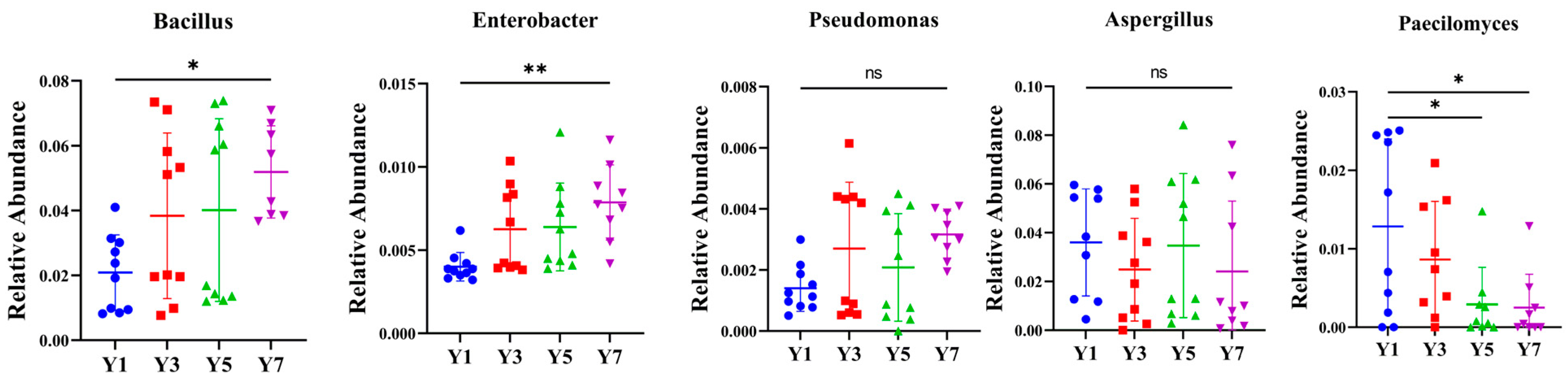 - Su, J.; Wang, Y.; Bai, M.; Peng, T.; Li, H.; Xu, H.J.; Guo, G.; Bai, H.; Rong, N.; Sahu, S.K.; et al. Soil conditions and the plant microbiome boost the accumulation of monoterpenes in the fruit of Citrus reticulata ‘Chachi’. Microbiome 2023, 11, 61. [Google Scholar] [CrossRef] [PubMed]