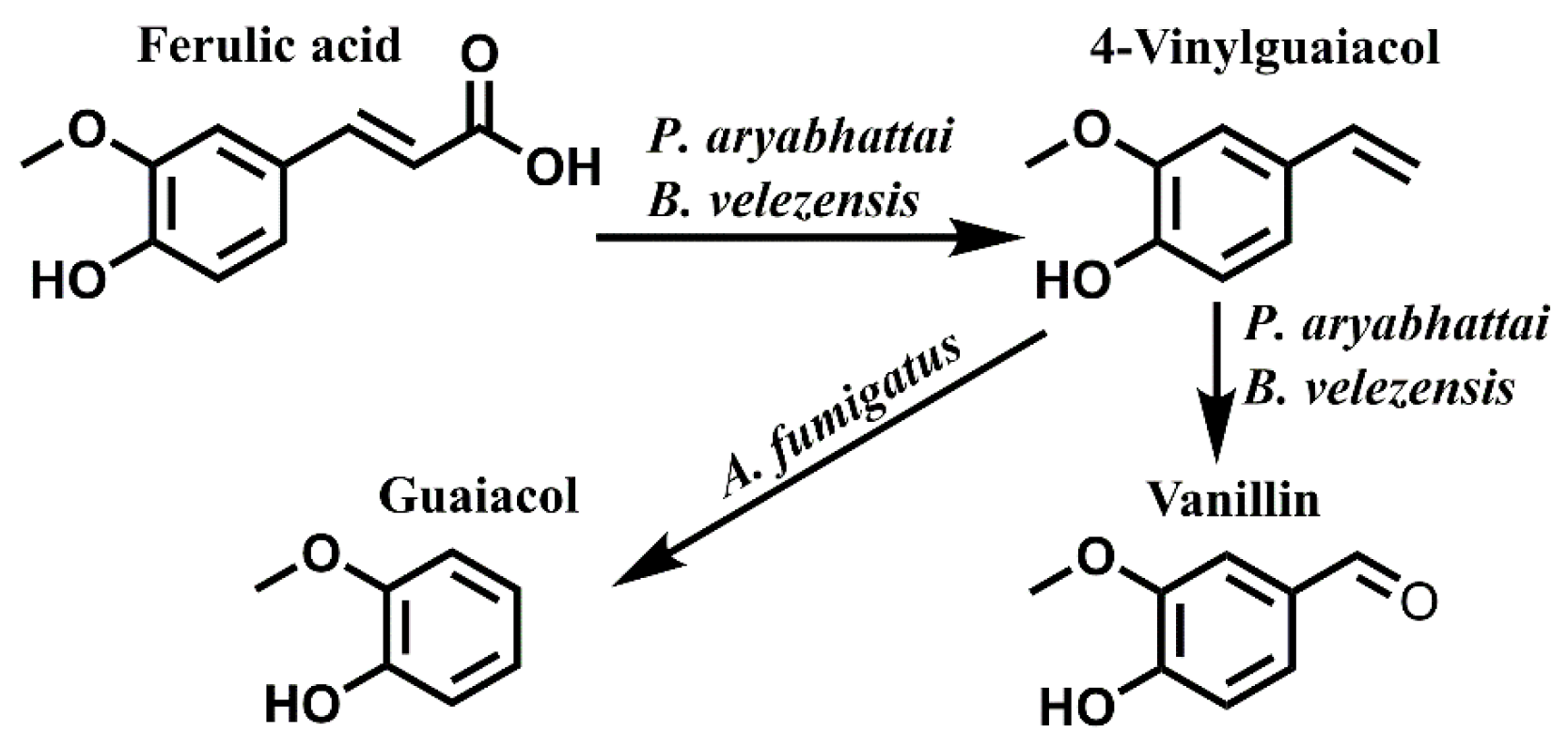 2.8. Microbial Transformation of 4-VG Related Compounds