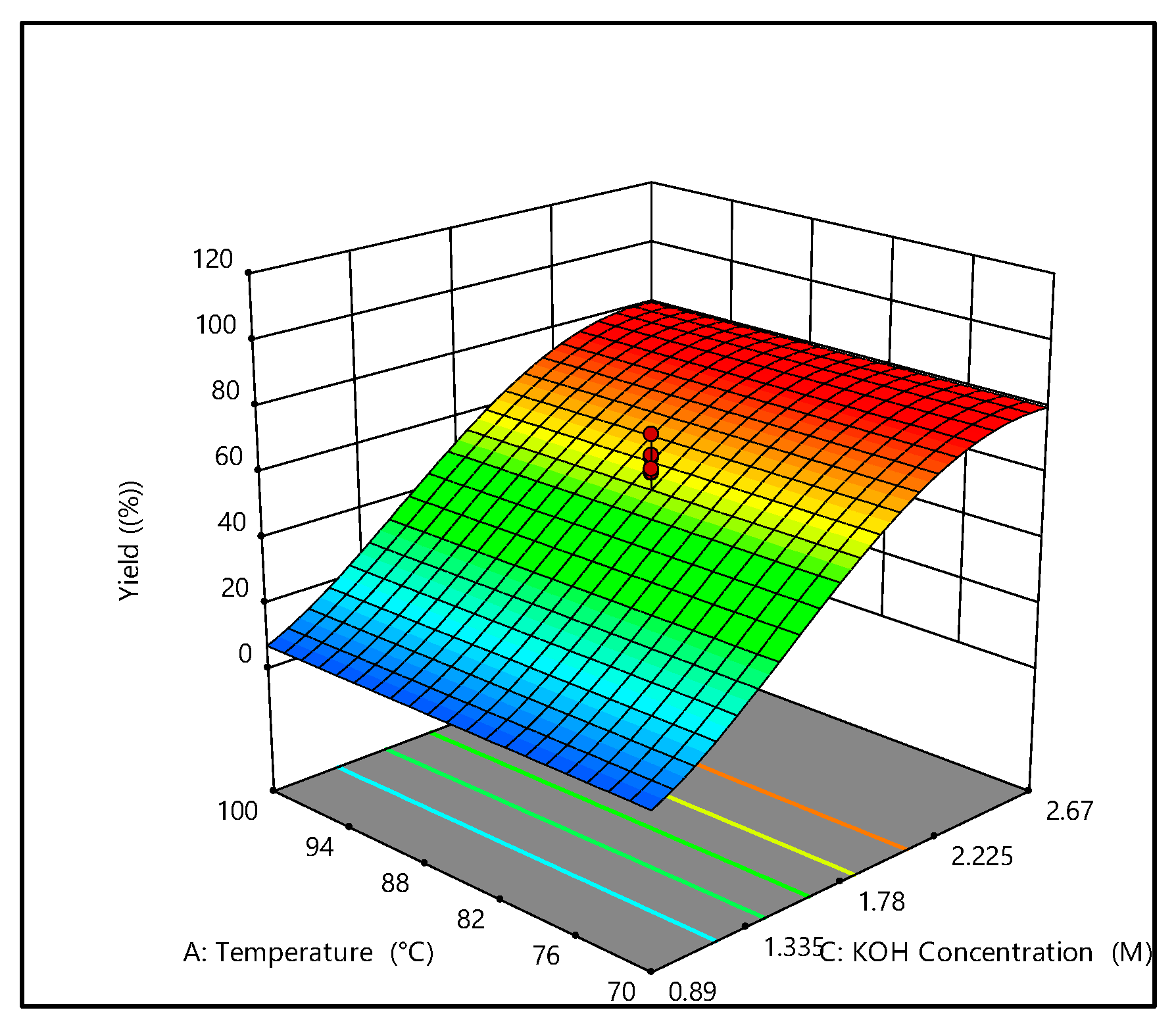 Temperature, °C | Time, h | KOH, M | Yield, % | |