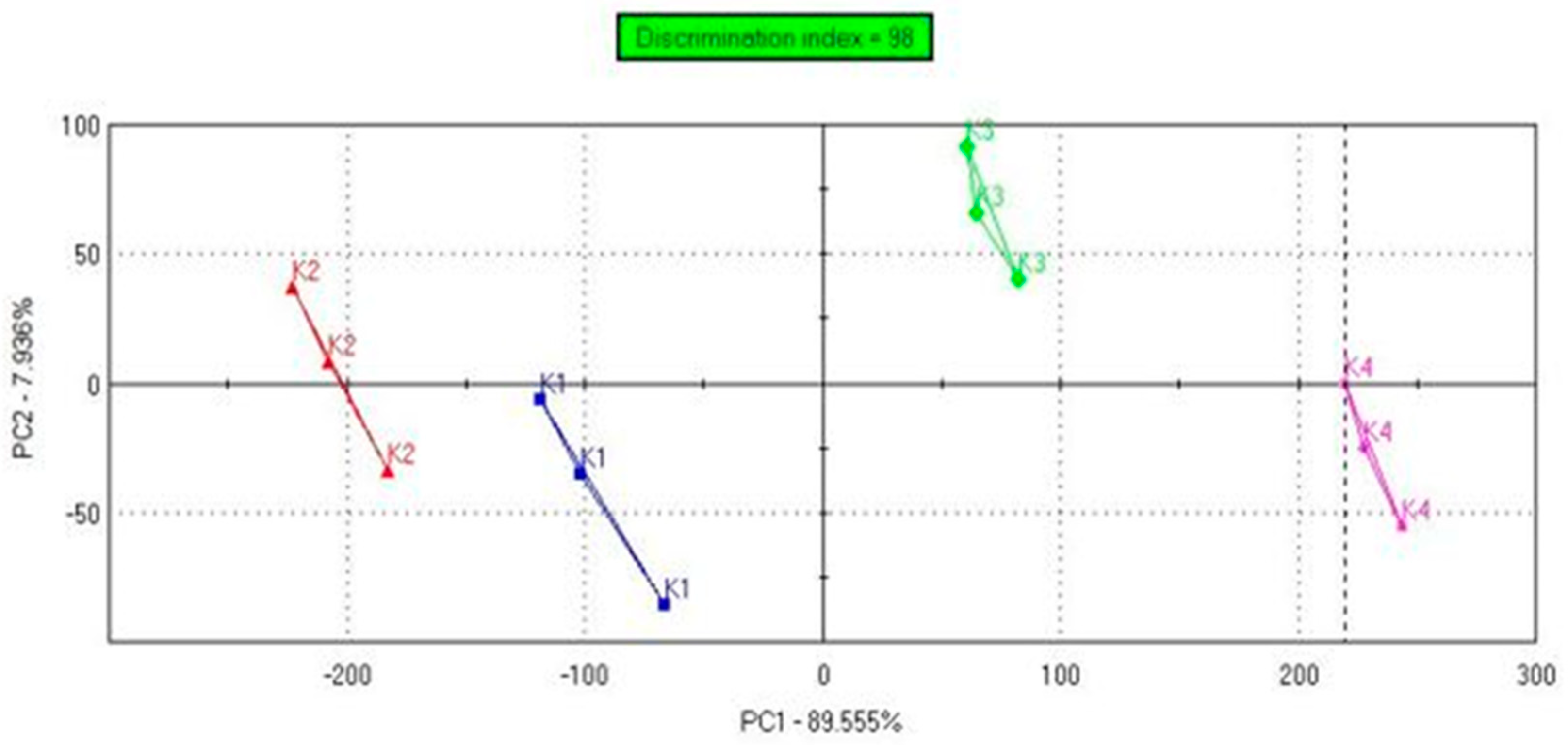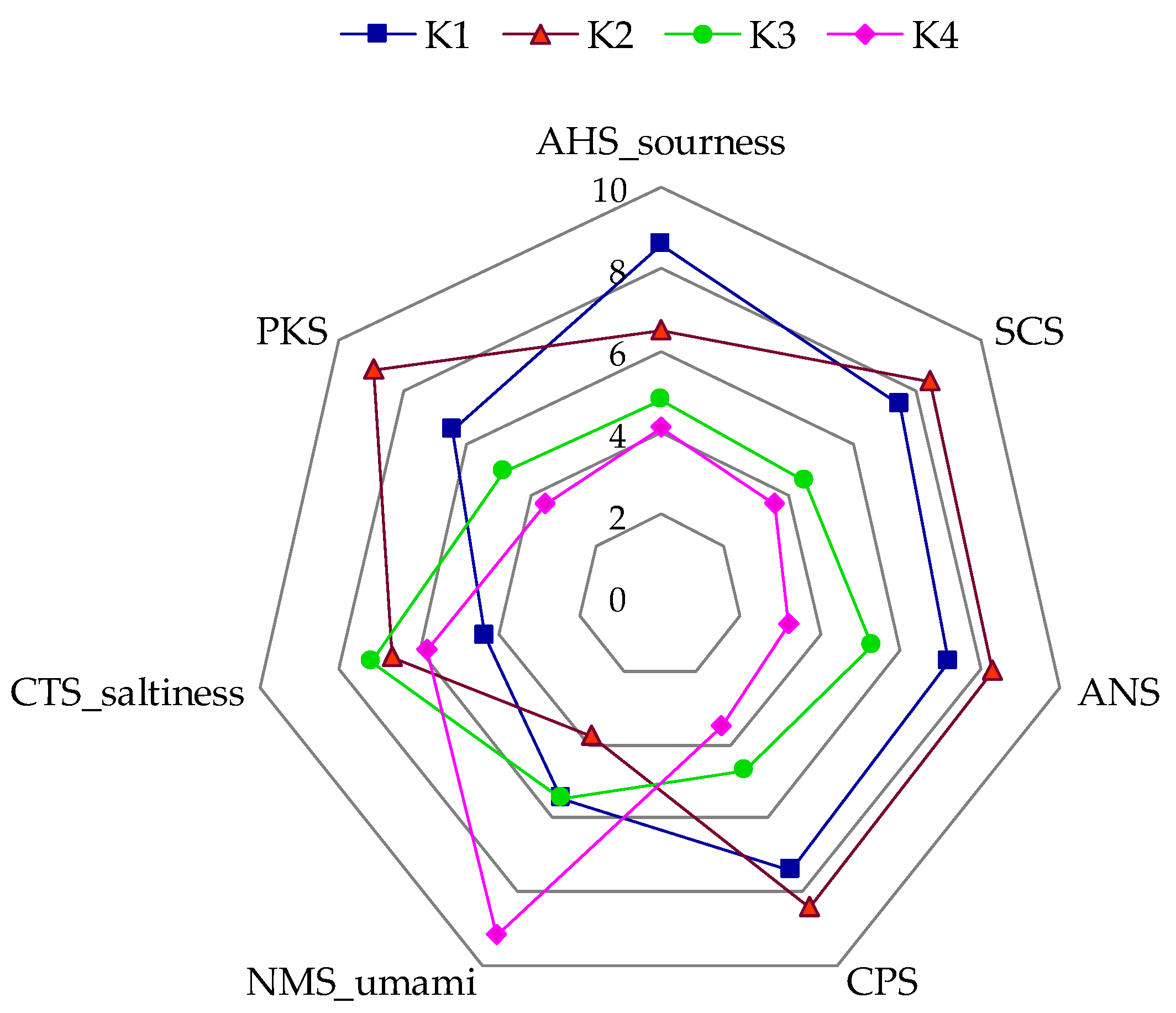 3.3. Sensory Evaluation and Analysis of Chemosensors