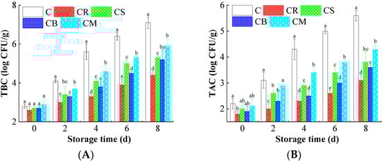 Total bacterial count (TBC) and total aerobic count (TAC) of the preserved beef were investigated to indicate the antimicrobial properties. TBC was determined using iron agar with 10 g/L NaCl, while TAC used plate count agar. Serial dilutions of beef homogenates were spread-plated and incubated at 37 °C for 24 h, following established protocols [].