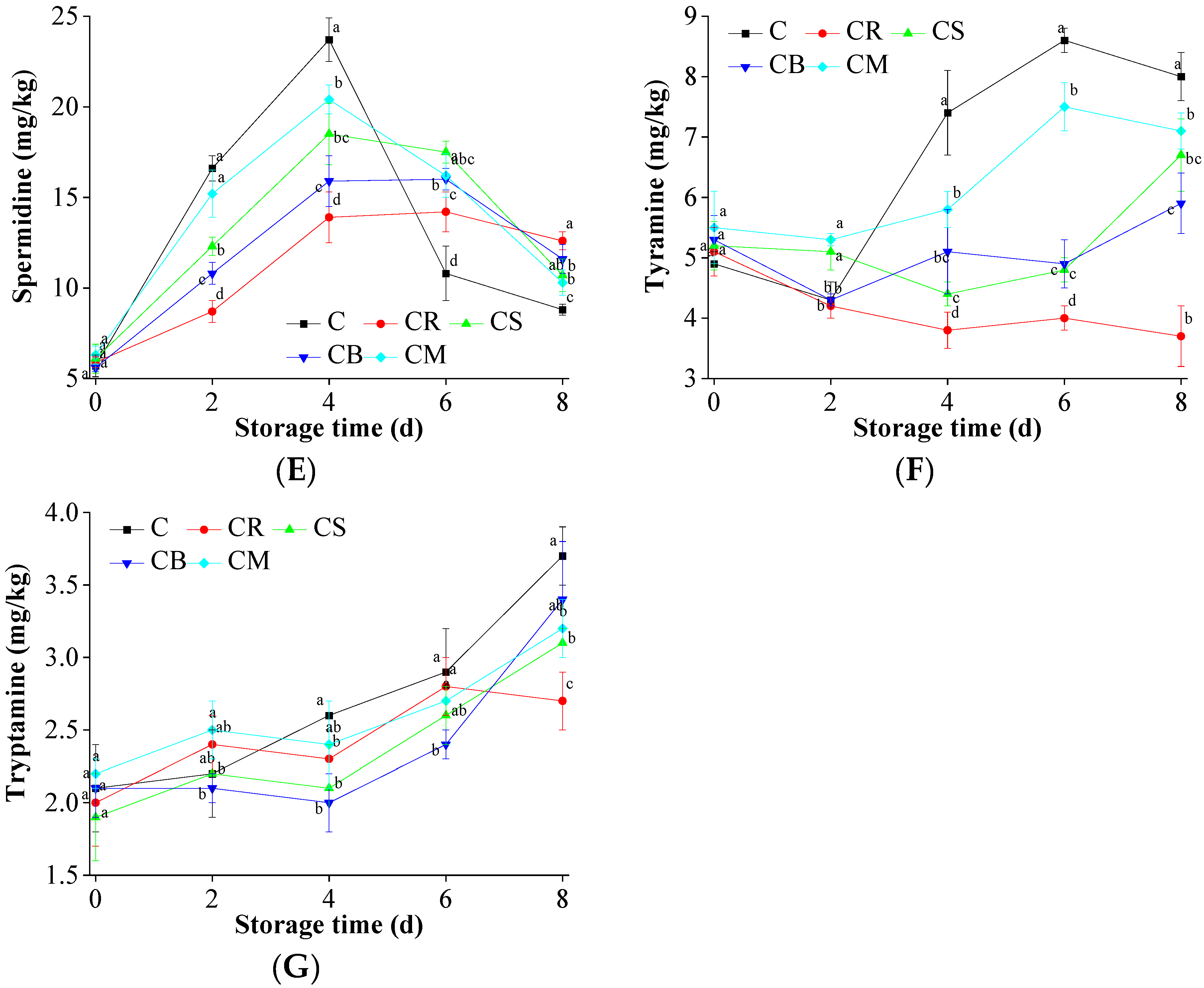 2.9. Biogenic Amines Accumulation in the Preserved Beef