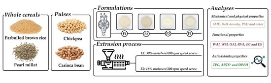 Chuqui-Paulino, F.J.; Chávez, D.W.H.; Ascheri, J.L.R.; Mellinger, C.G.; Vargas-Solorzano, J.W.; Carvalho, C.W.P. Impact of Whole Cereal–Pulse Flours on the Functionality and Antioxidant Properties of Gluten-Free Extruded Flours. Foods 2025, 14, 3515. https://doi.org/10.3390/foods14203515