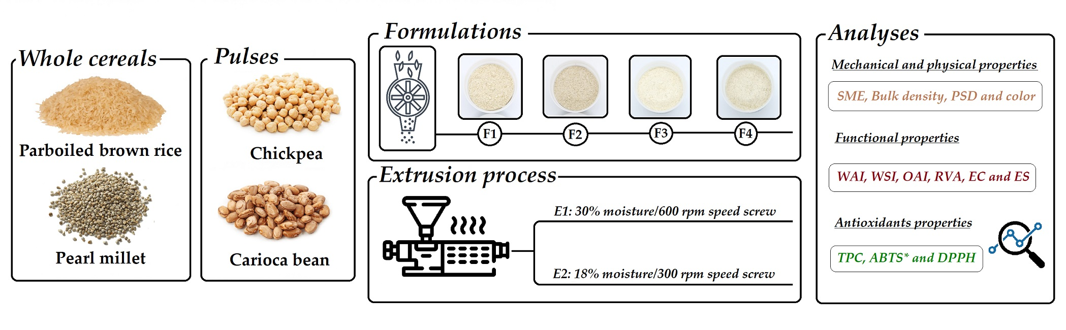 Chuqui-Paulino FJ, Chávez DWH, Ascheri JLR, Mellinger CG, Vargas-Solorzano JW, Carvalho CWP. Impact of Whole Cereal–Pulse Flours on the Functionality and Antioxidant Properties of Gluten-Free Extruded Flours. Foods. 2025; 14(20):3515. https://doi.org/10.3390/foods14203515