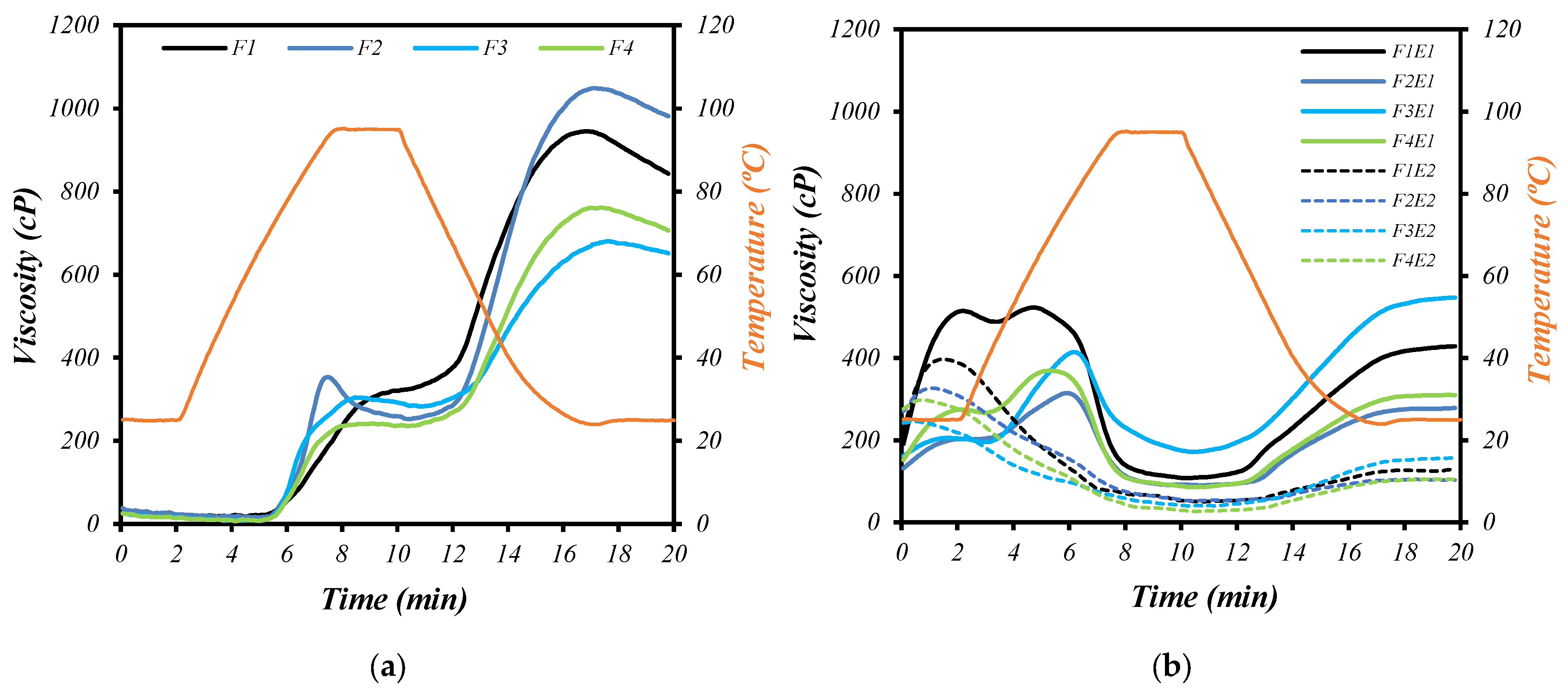 - Becker, A.; Hill, S.E.; Mitchell, J.R. Milling—A Further Parameter Affecting the Rapid Visco Analyser (RVA) Profile. Cereal Chem. 2001, 78, 166–172. [Google Scholar] [CrossRef]
