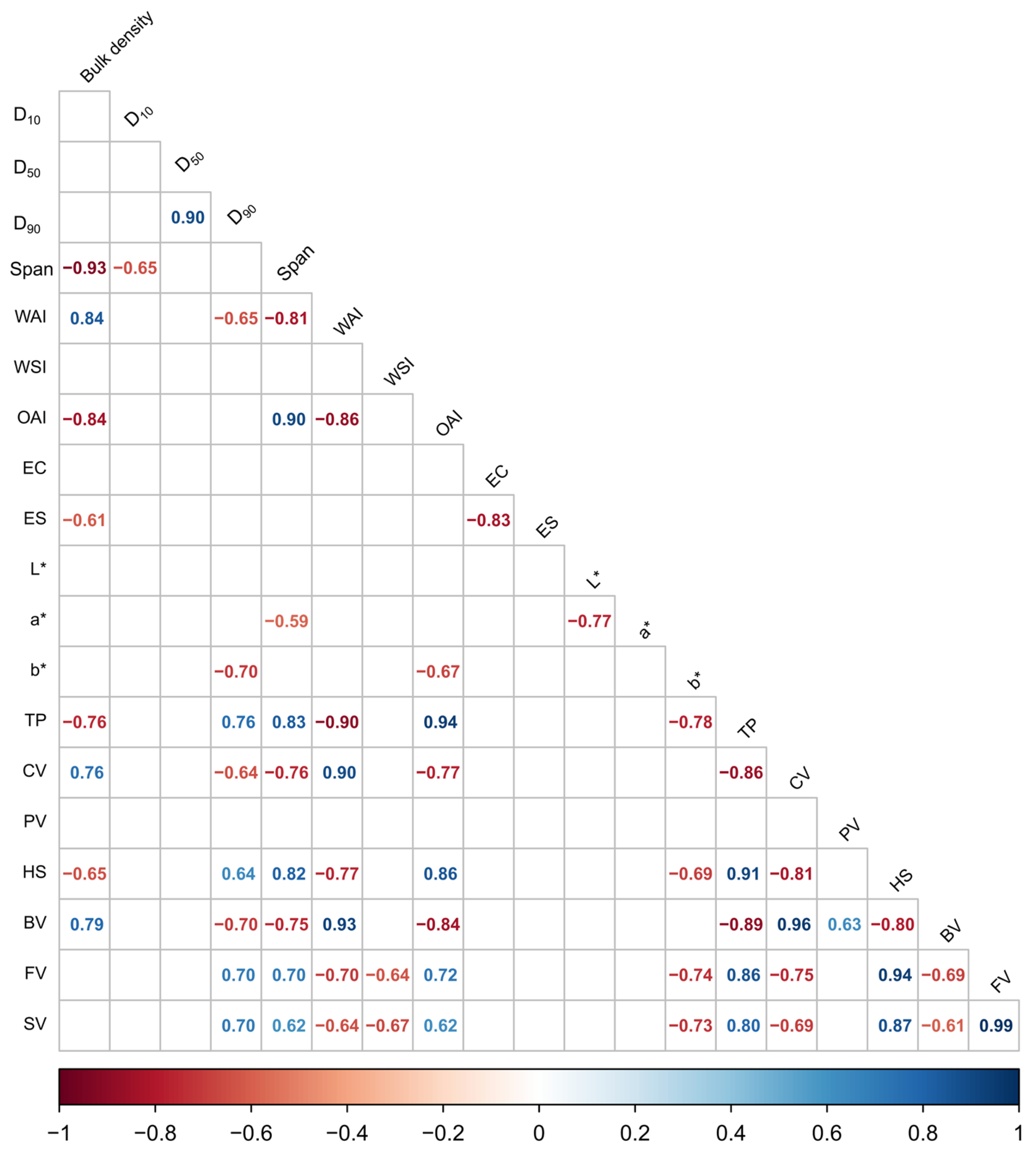 2.5.1. Water Absorption Index (WAI) and Water Solubility Index (WSI)