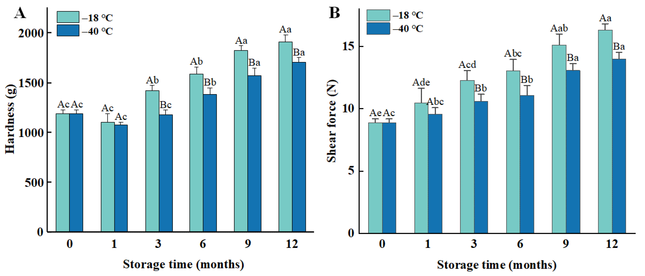 −40 °C | 0 | 76.98 ± 0.40 Ad | 34.69 ± 1.68 Ae | 25.54 ± 1.18 Ad | 21.67 ± 1.10 Ac | 17.28 ± 1.45 Ad | 14.40 ± 1.90 Ac |