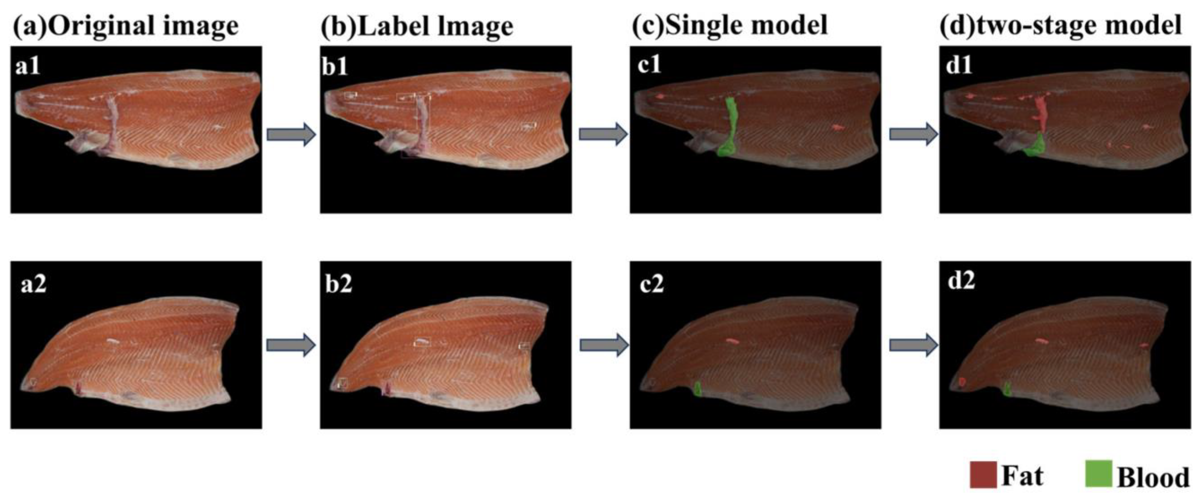 APA StyleZhang, C., Zhao, Y., Yang, W., Gao, L., Zhang, W., Liu, Y., Zhang, X., & Wang, H. (2025). Computer Vision-Based Deep Learning Modeling for Salmon Part Segmentation and Defect Identification. Foods, 14(20), 3529. https://doi.org/10.3390/foods14203529