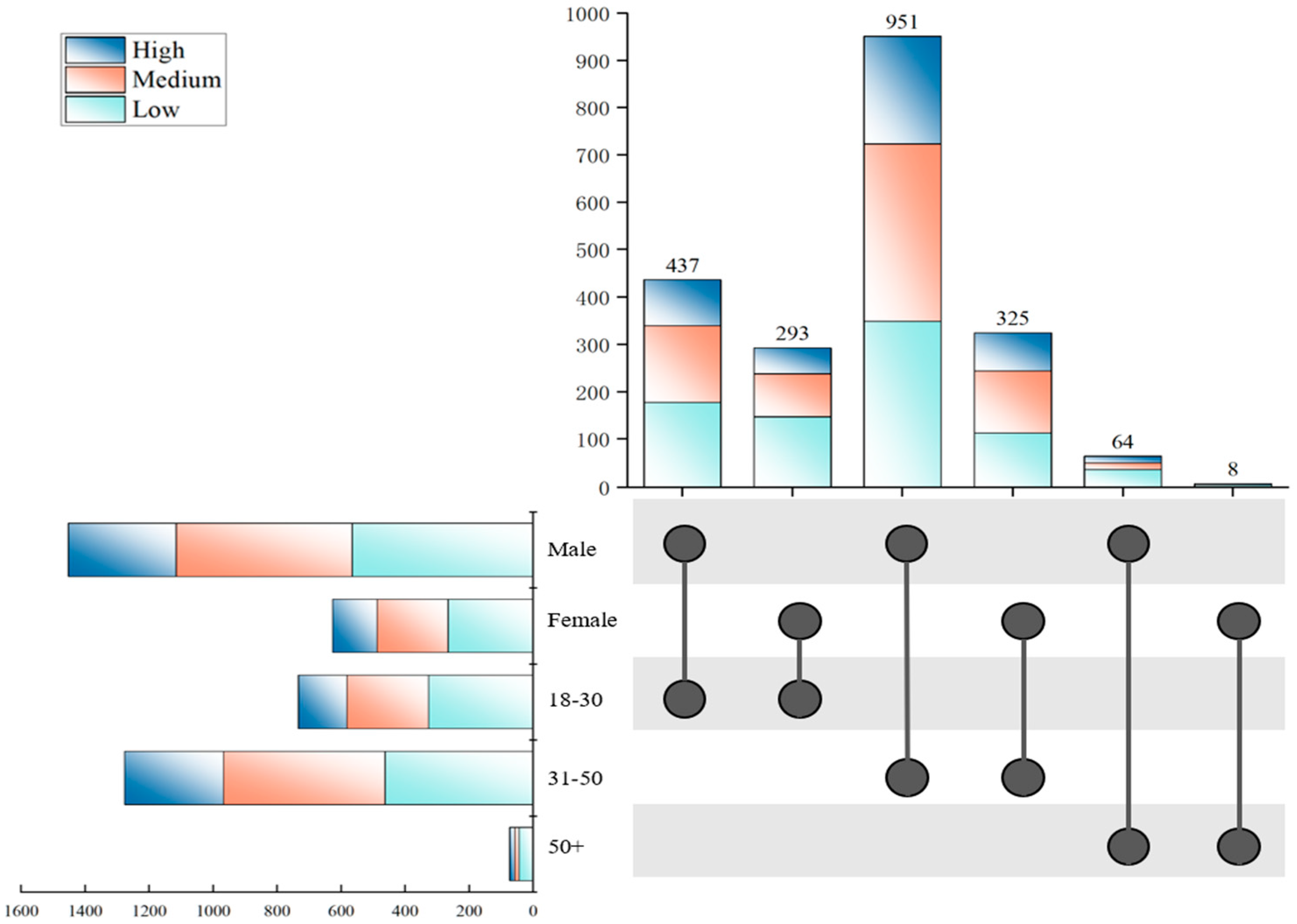 Gender | Male | 565 (38.91%) | 550 (37.88%) | 337 (23.21%) |