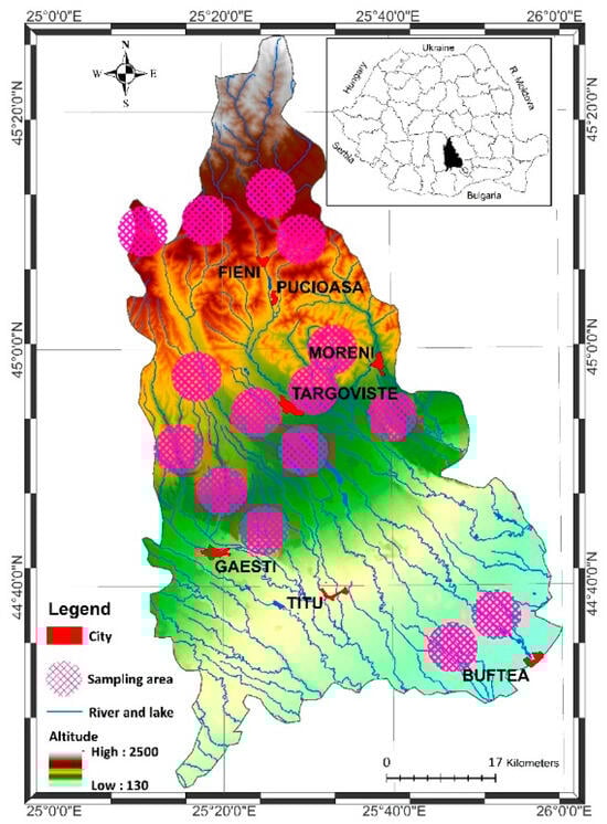 Sampling sites of wild mushrooms across Dâmbovița County, Romania.