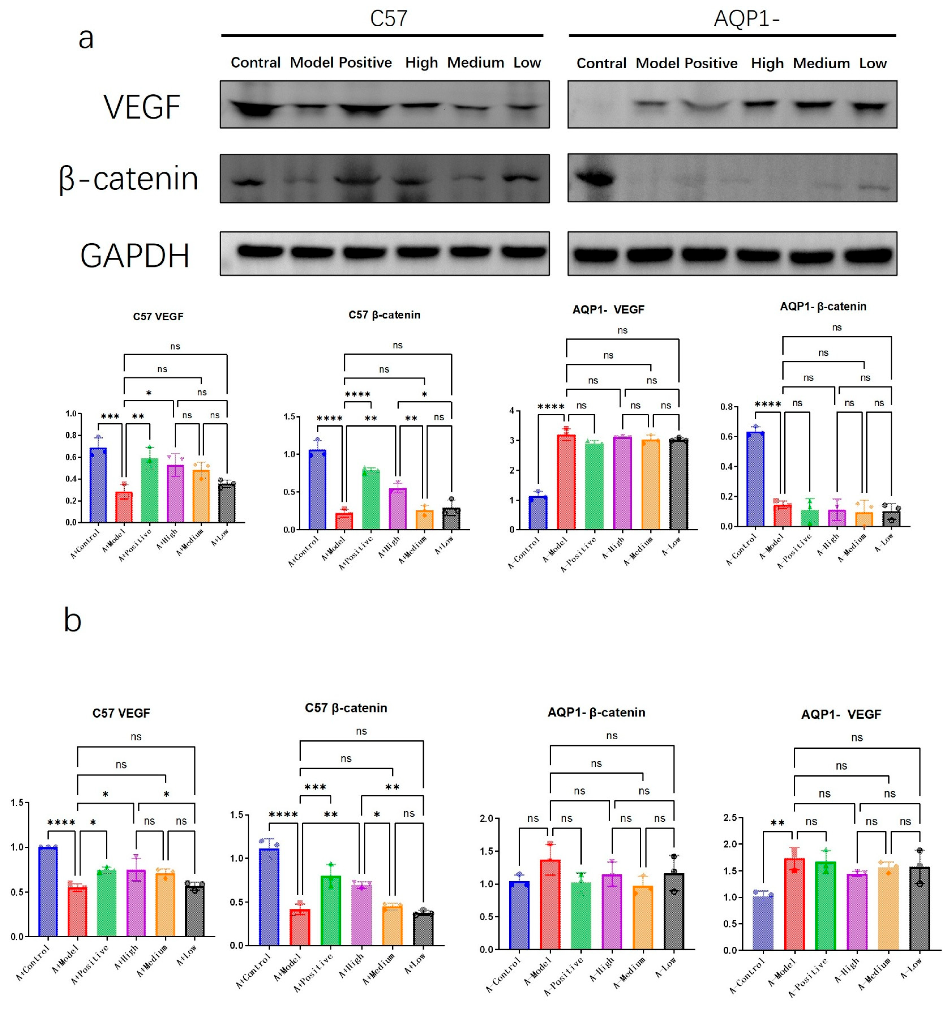 In contrast, VEGF expression trends appeared independent of AQP1 knockout. VEGF—a major mediator of angiogenesis and vascular permeability—may be activated via LA&ALA to promote vascular regeneration and alleviate heart failure symptoms, indicating that this pharmacological effect operates through an AQP1-independent pathway.