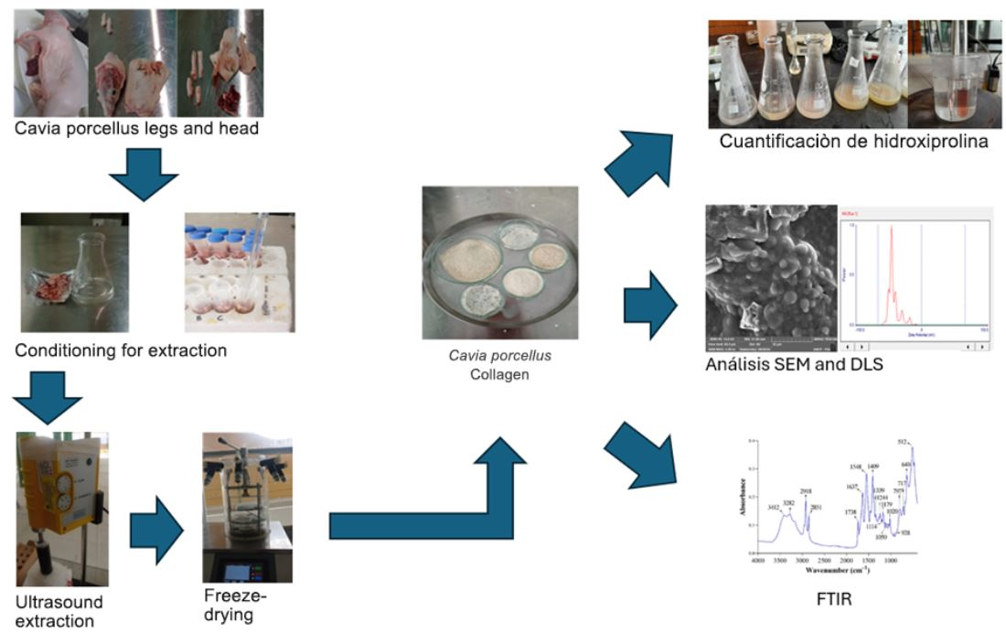 Santos GL, Valenzuela ME, Hinostroza-Quiñonez G, Ramos OF, López EA, Saavedra RT, Zacarias ER, Bonilla H, Álvarez EI, Espinoza Silva C. Valorization of Cavia porcellus By-Products via Ultrasound-Assisted Collagen Extraction: Optimization and Characterization. Foods. 2025; 14(20):3542. https://doi.org/10.3390/foods14203542