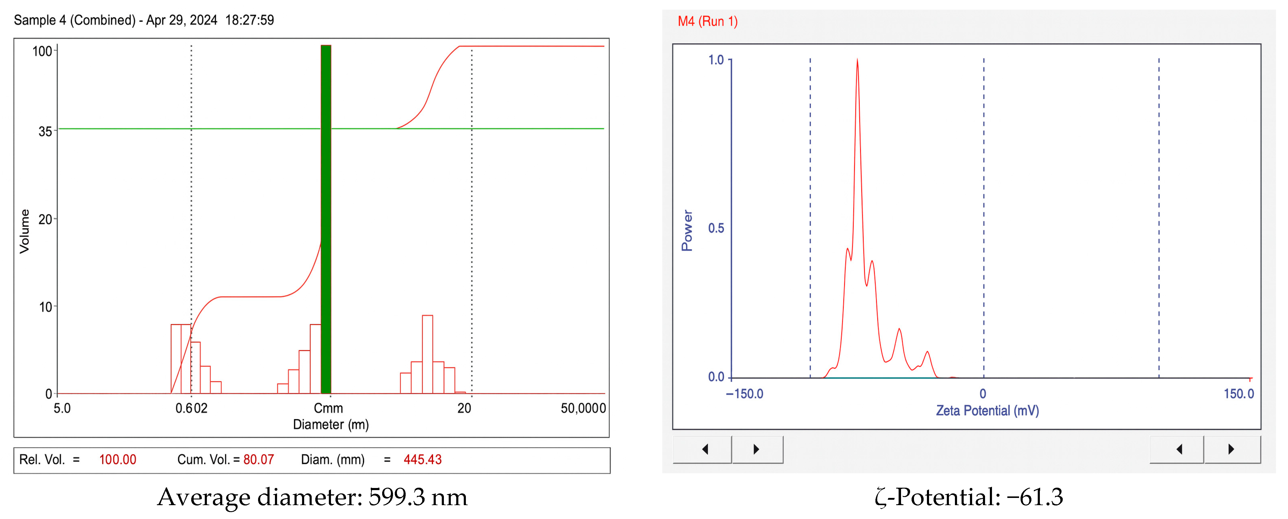 2.6. Determination of ζ-Potential by Dynamic Light Scattering (DLS)