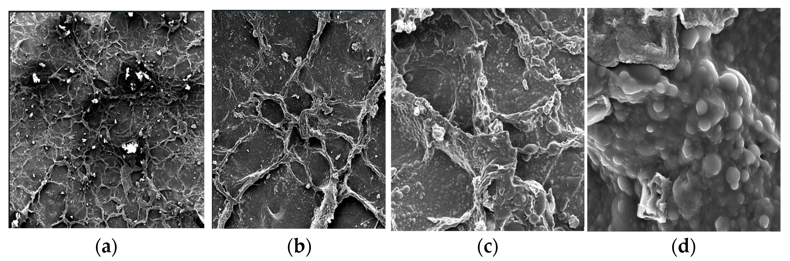 - Woessner, J.F. The determination of hydroxyproline in tissue and protein samples containing small proportions of this imino acid. Arch. Biochem. Biophys. 1961, 93, 440–447. [Google Scholar] [CrossRef]