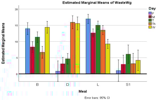 Figure 2 illustrates the interaction between weekday and meal type on PFW (WasteWg).