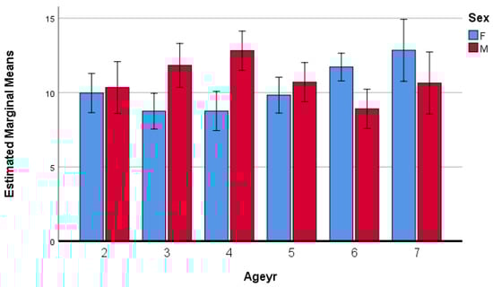 By contrast, no significant gender differences emerged in the portion size served (MealWg), which averaged 110.23 g for both boys and girls (F(1,14290) = 0.00, p = 0.992). This indicates that observed differences in waste are not attributable to differences in the amount of food offered, but rather to behavioral and preference-related factors (Table 5).