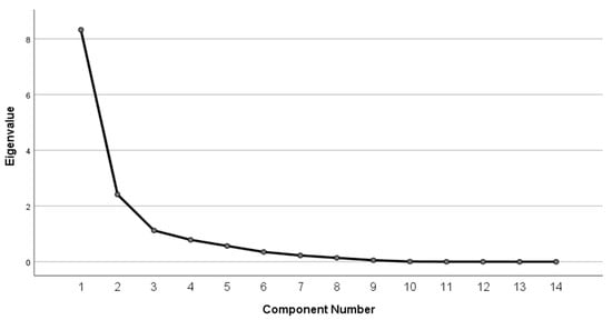 To investigate the latent structure of PFW determinants, a Principal Component Analysis (PCA) with Varimax rotation was applied on 14 continuous variables related to meal weight, nutrient composition, and waste indicators (MealWg, WasteWg, MWP, MWF, MWC, MWE, WWP, WWF, WWC, WWE, FLDRP, FLDRC, FLDRL, FLDRE). Sampling adequacy was verified using the Kaiser–Meyer–Olkin (KMO) measure and Bartlett’s test of sphericity. Components with eigenvalues greater than 1 were retained, and component scores were saved for subsequent regression analysis. The PCA extracted three components explaining 84.7% of the total variance: (1) Portion Control, (2) Menu Design, (3) Serving Strategy. Together, they outline priority areas for reducing PFW and protecting the nutritional value of meals. All analyses were performed in IBM SPSS Statistics v.26. The full syntax for data processing and PCA replication is available on request.