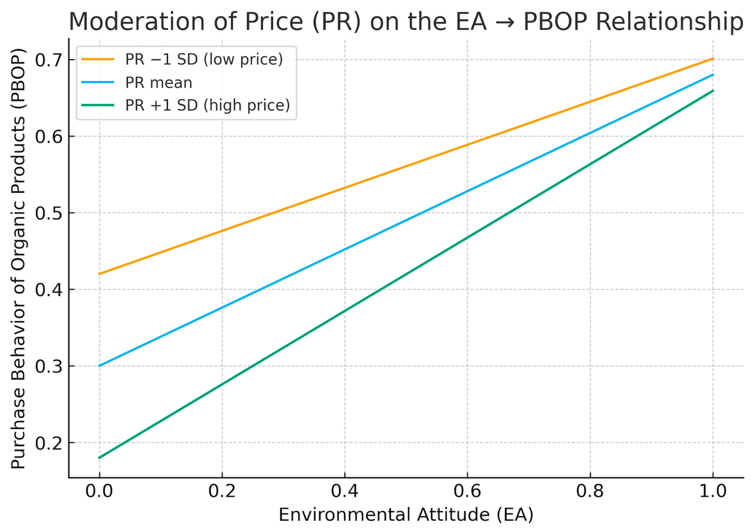 5.3. Moderating Effect of Price on the Relationship Between Environmental Attitude and the Purchase Behavior of Organic Products
