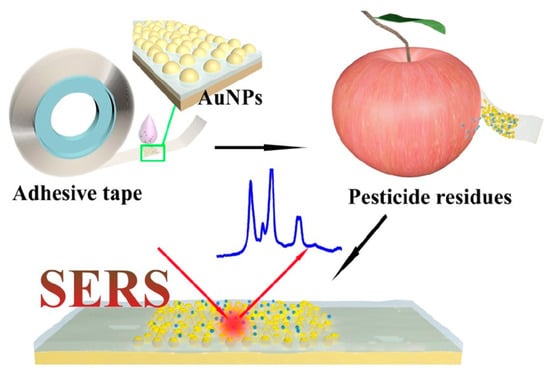 - Chen, J.; Huang, Y.; Kannan, P.; Zhang, L.; Lin, Z.; Zhang, J.; Chen, T.; Guo, L. Flexible and Adhesive Surface Enhance Raman Scattering Active Tape for Rapid Detection of Pesticide Residues in Fruits and Vegetables. Anal. Chem. 2016, 88, 2149–2155. [Google Scholar] [CrossRef]