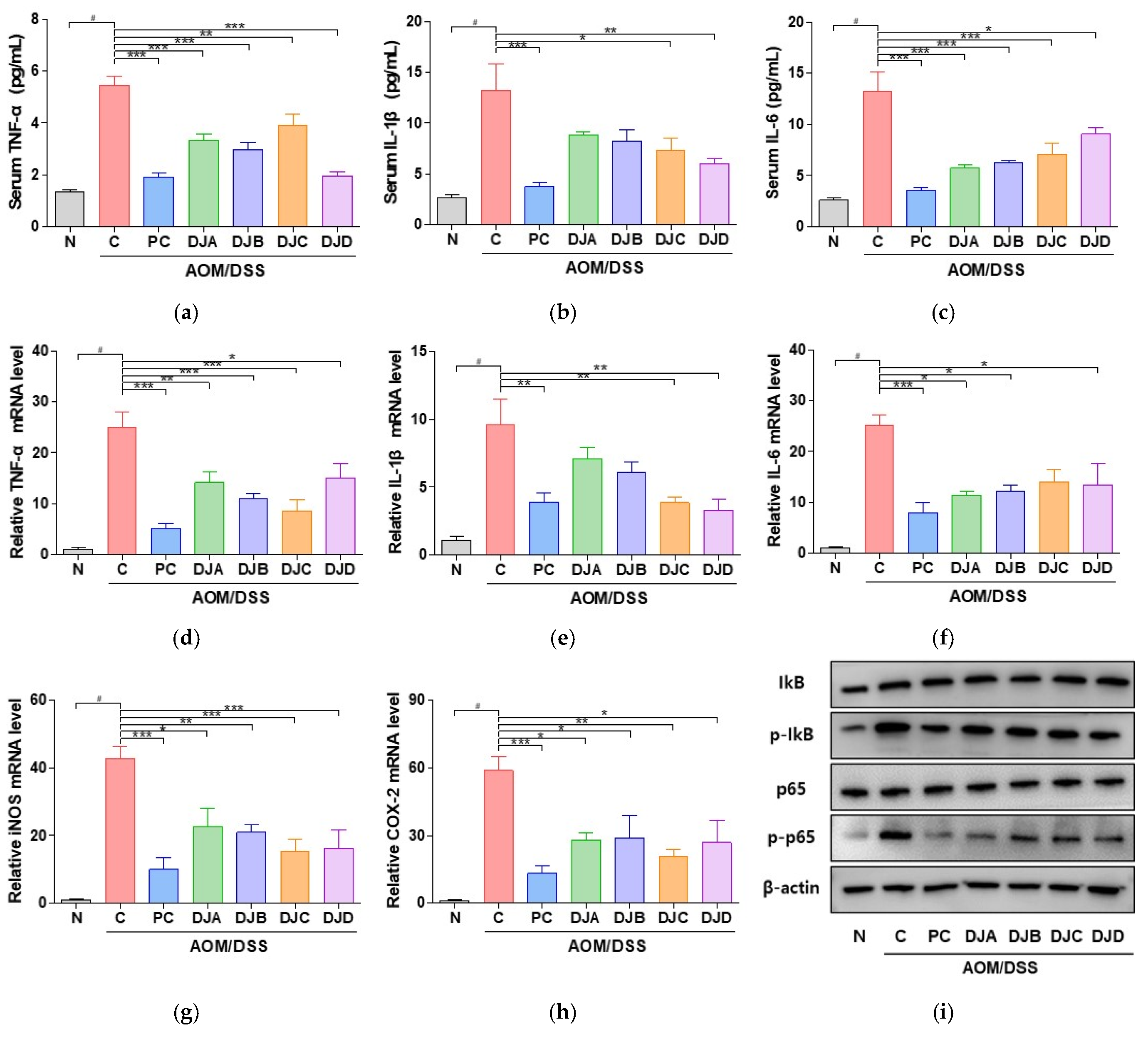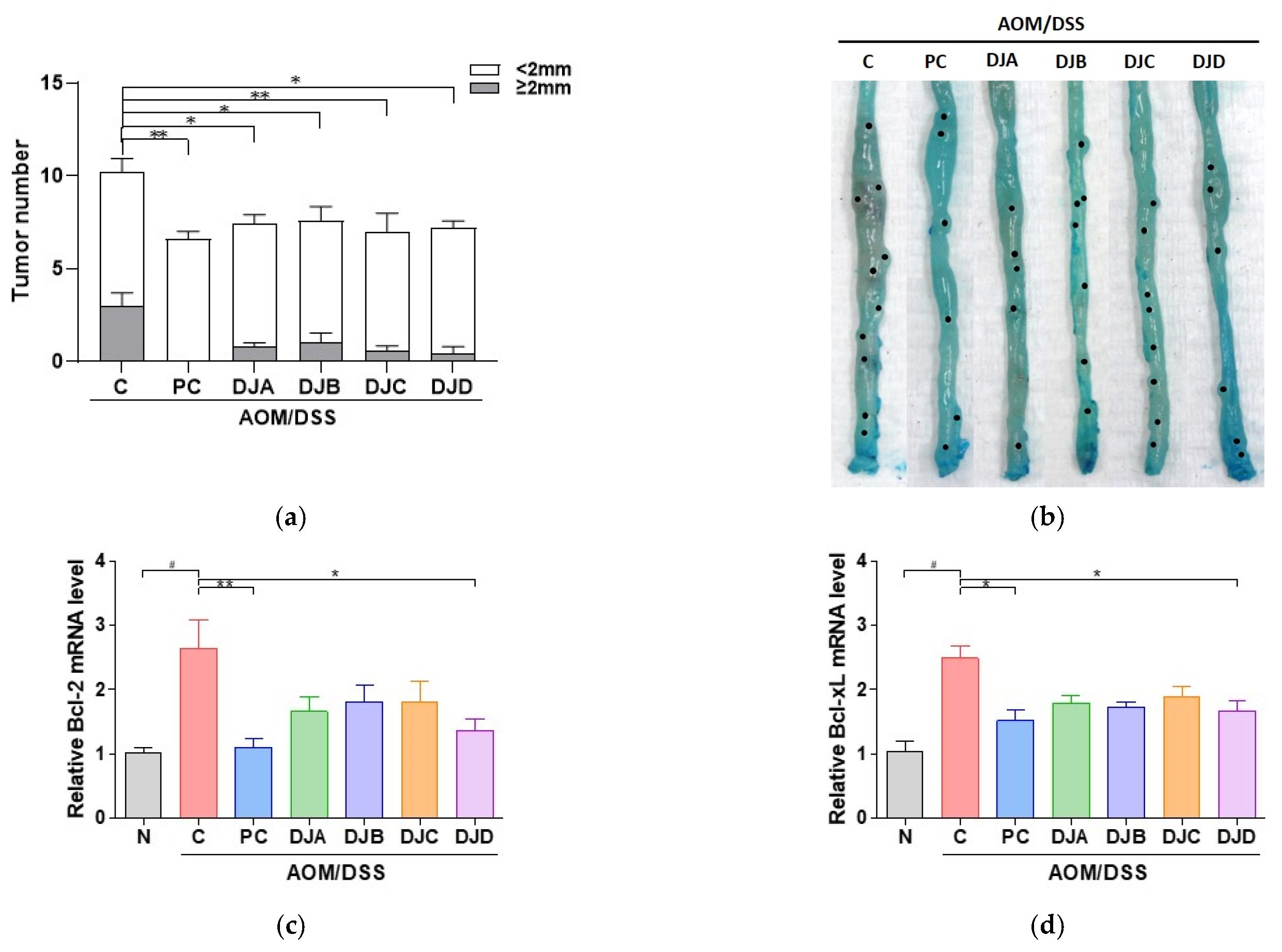 AOM/DSS + DJC | AOM (i.p., 10 mg/kg)/2% DSS (drinking water) | DJC (200 mg/kg) |