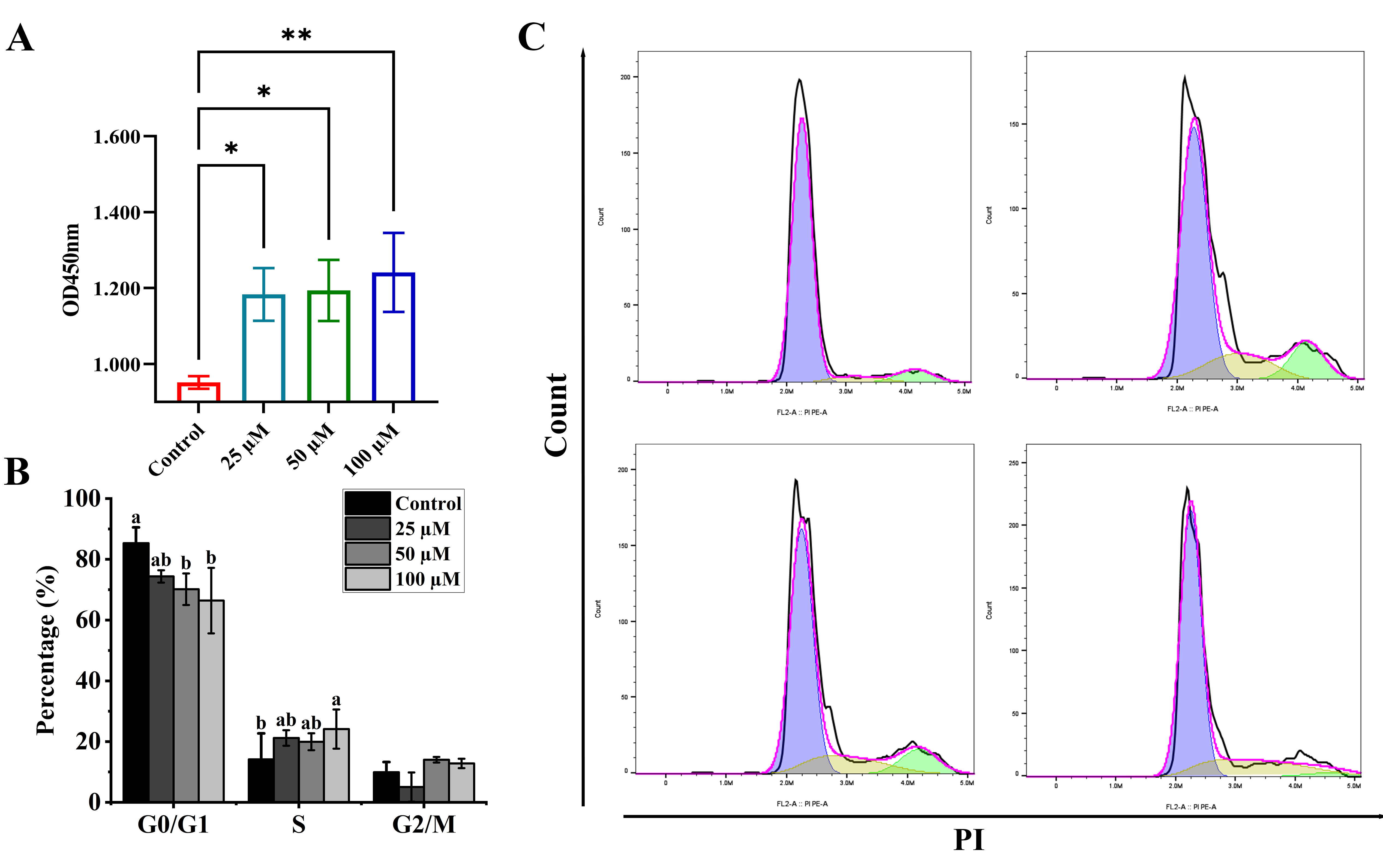2.2. Cell Proliferation, Cycle, and Migration Assays