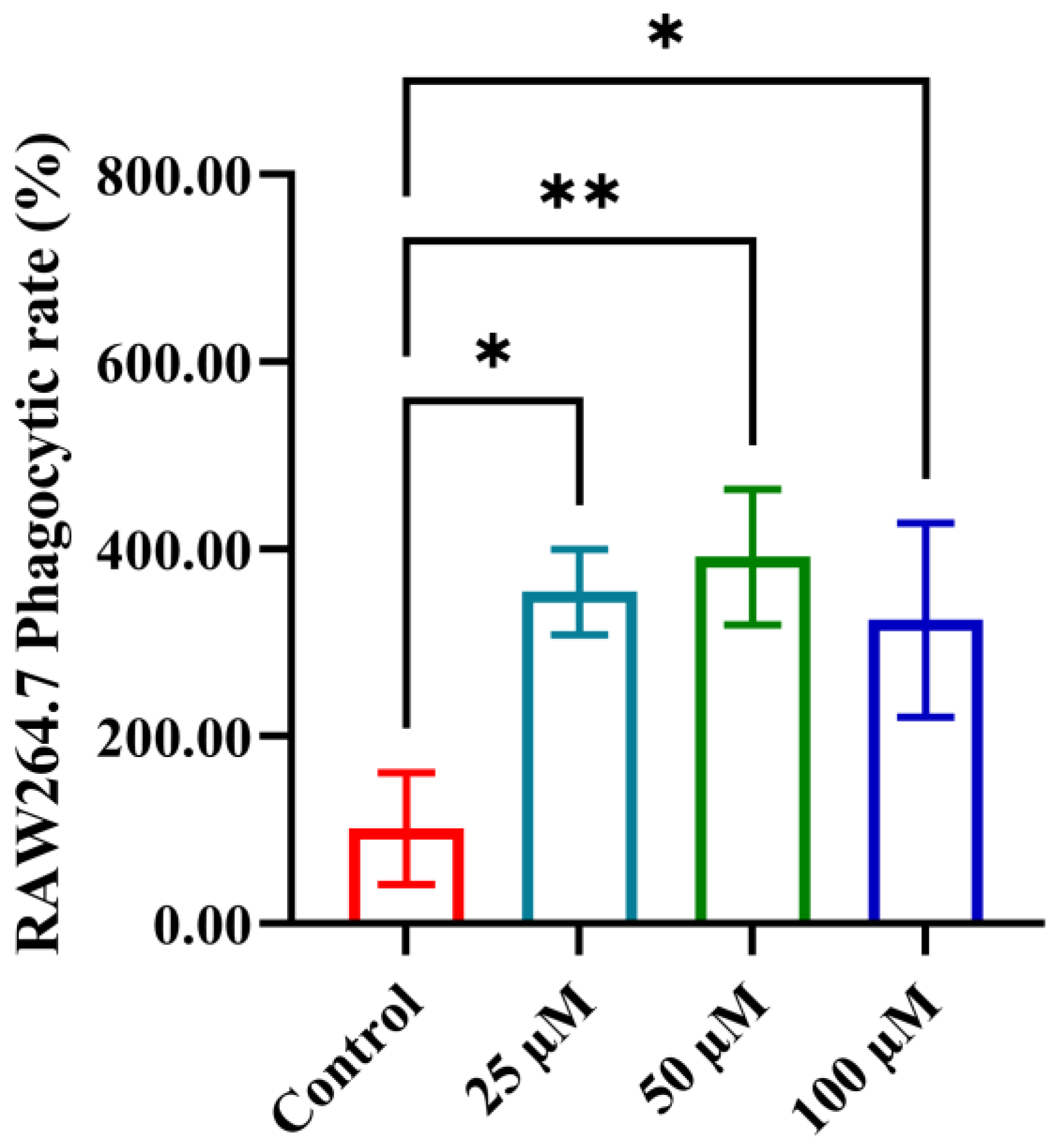 3.4. The Impact of YPFPGPIH on Macrophage Phagocytosis
