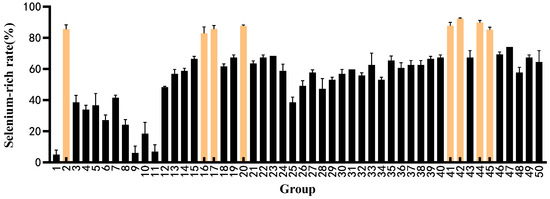 Selenium enrichment rate of strains under optimal selenium enrichment conditions (Yellow is the strain with high selenium content).