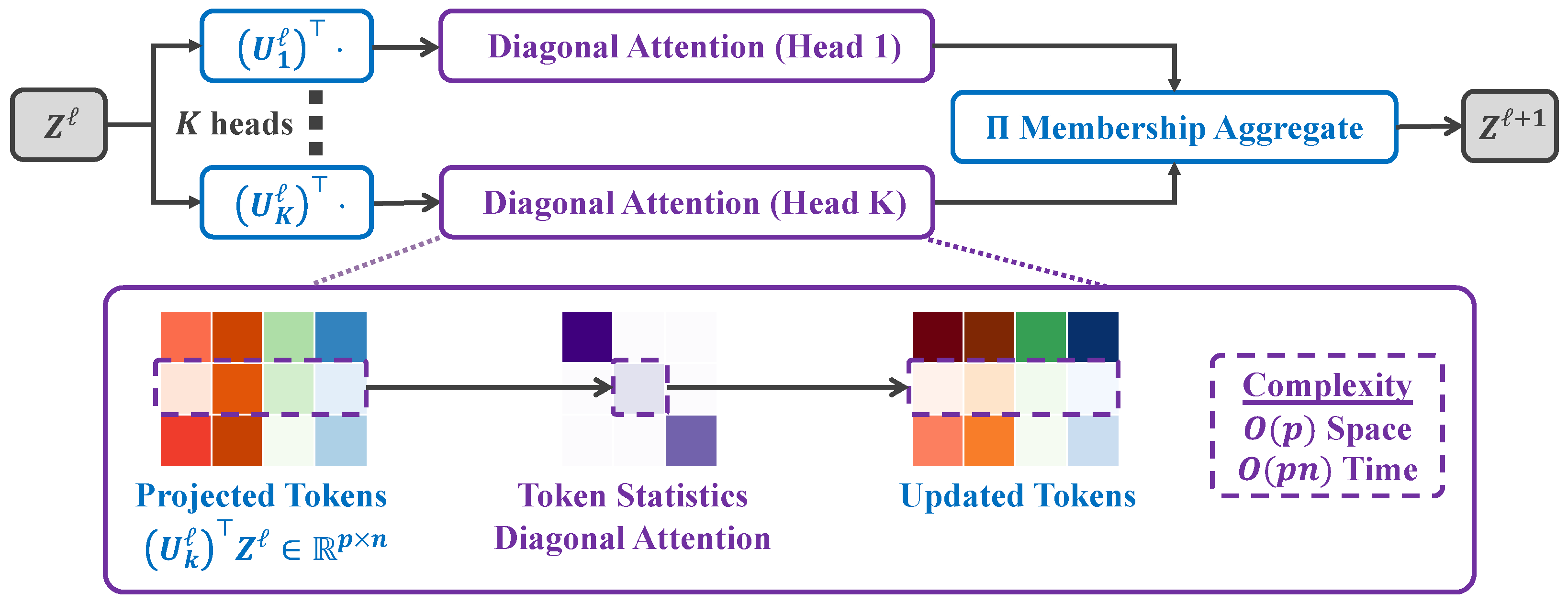 - Wu, Z.; Ding, T.; Lu, Y.; Pai, D.; Zhang, J.; Wang, W.; Yu, Y.; Ma, Y.; Haeffele, B.D. Token statistics transformer: Linear-time attention via variational rate reduction. arXiv 2024, arXiv:2412.17810. [Google Scholar] [CrossRef]