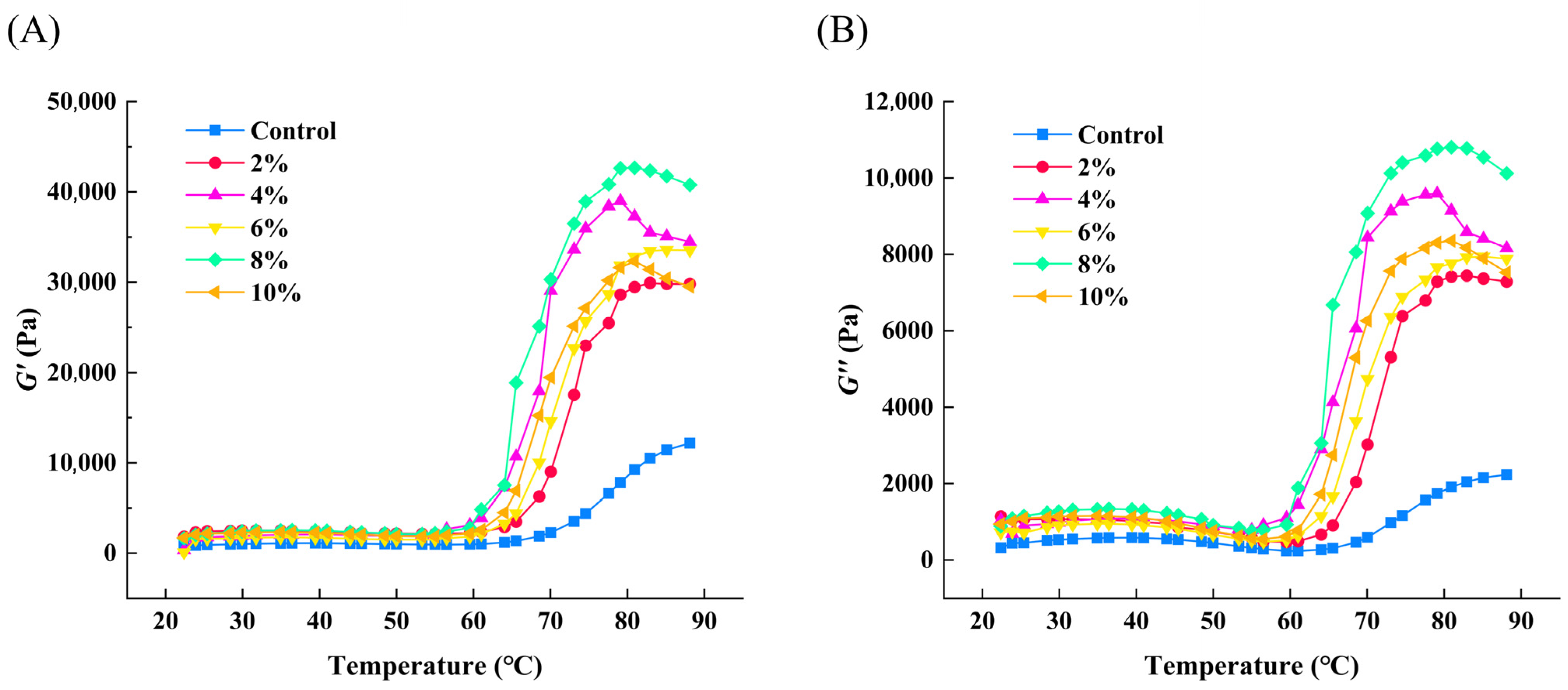 3.5. Impact of Changes in VA-WSE on Rheological Behavior of Surimi Gels