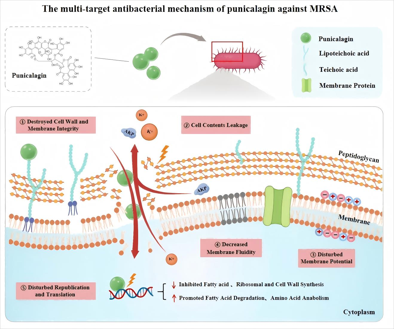 10]. However, existing research on punicalagin’s activity against MRSA remains limited. Mun et al. demonstrated that punicalagin enhances oxacillin efficacy against MRSA by downregulating