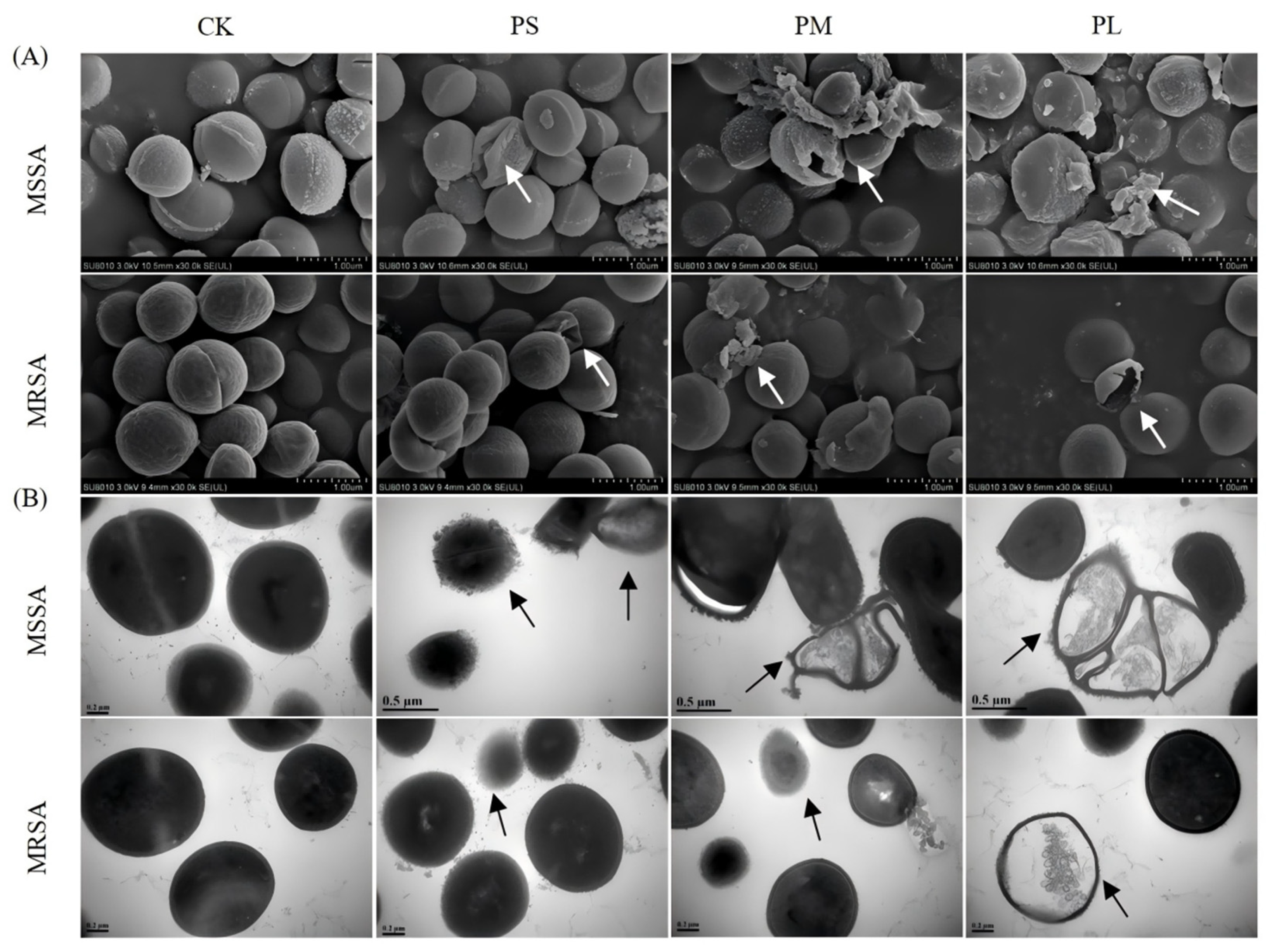 The ultrastructure changes in MSSA and MRSA induced by punicalagin were revealed via transmission electron microscopy (TEM) [