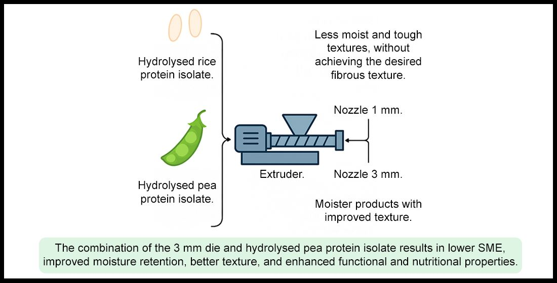 Effects of Extrusion on Protein Textures of Hydrolysed Rice and Pea Isolates
