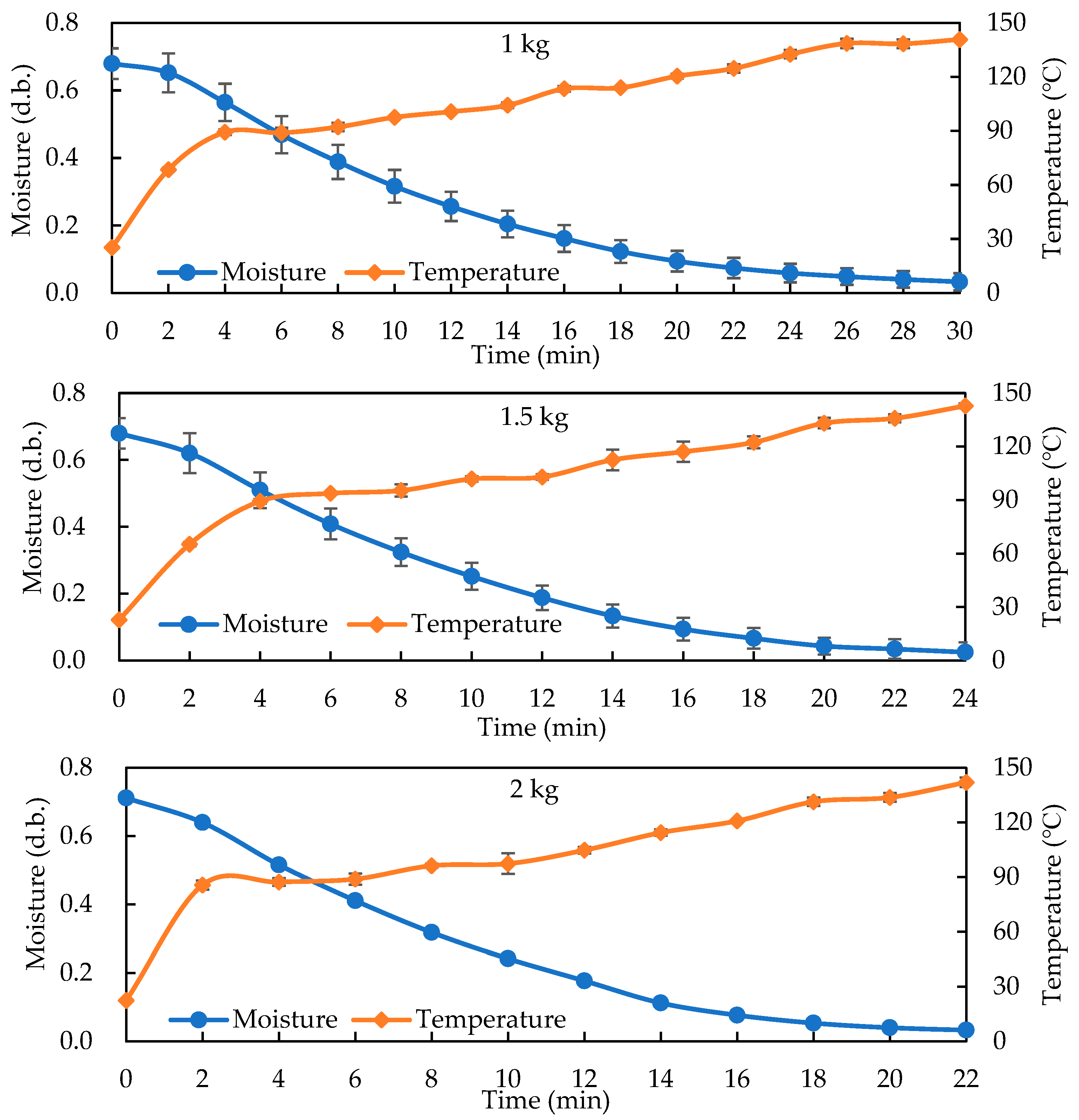 2.4. Temperature and Moisture Changes During HARF Drying