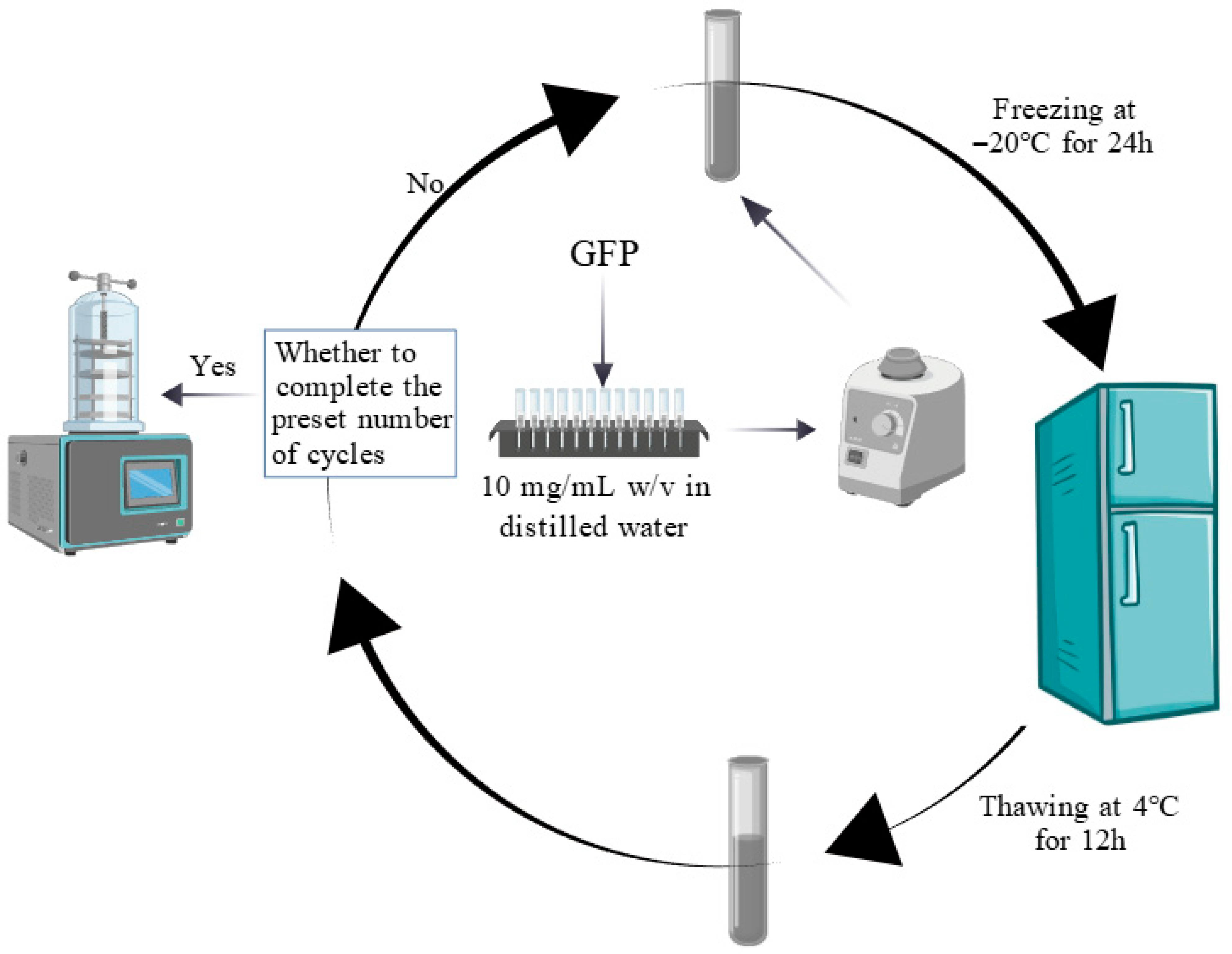 - Cao, E.; Chen, Y.; Cui, Z.; Foster, P. Effect of freezing and thawing rates on denaturation of protein in aqueous solutions. Biotechnol. Bioeng. 2003, 82, 684–690. [Google Scholar] [CrossRef]