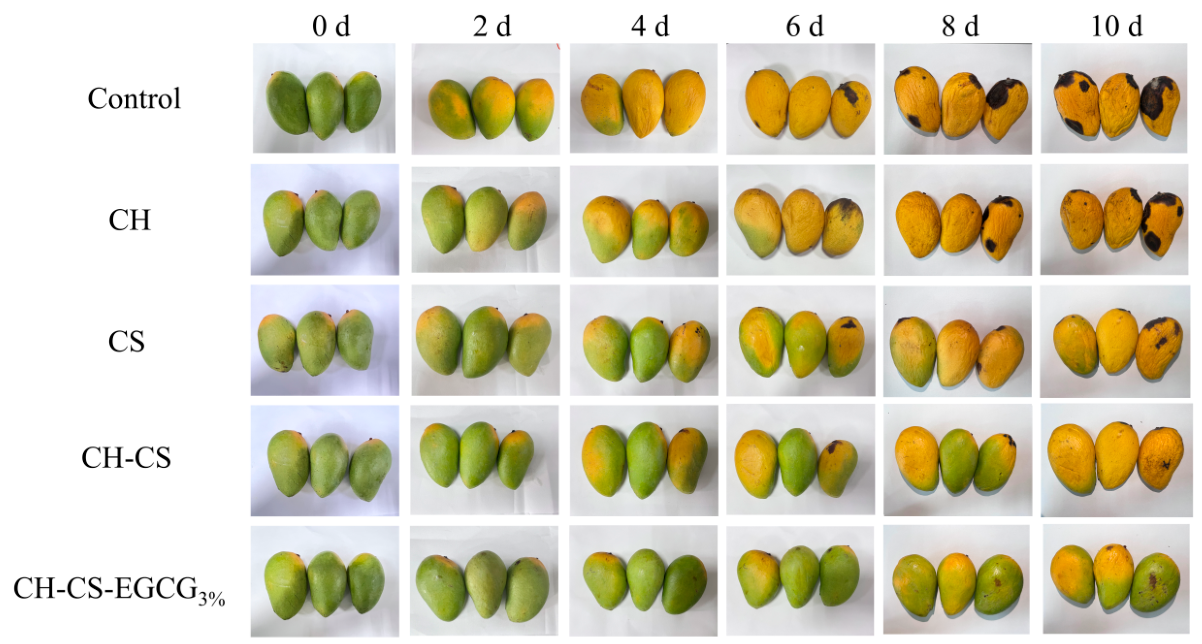 Ren, G.; Liu, L.; Wang, M.; Pan, J.; Wang, Z.; Hu, R.; Zhou, J.; Song, X.; Cheng, K.; Cheng, W. Nature’s Preservative: Epigallocatechin Gallate-Loaded Edible Film Extends Mango Shelf Life. Foods 2025, 14, 3609. https://doi.org/10.3390/foods14213609