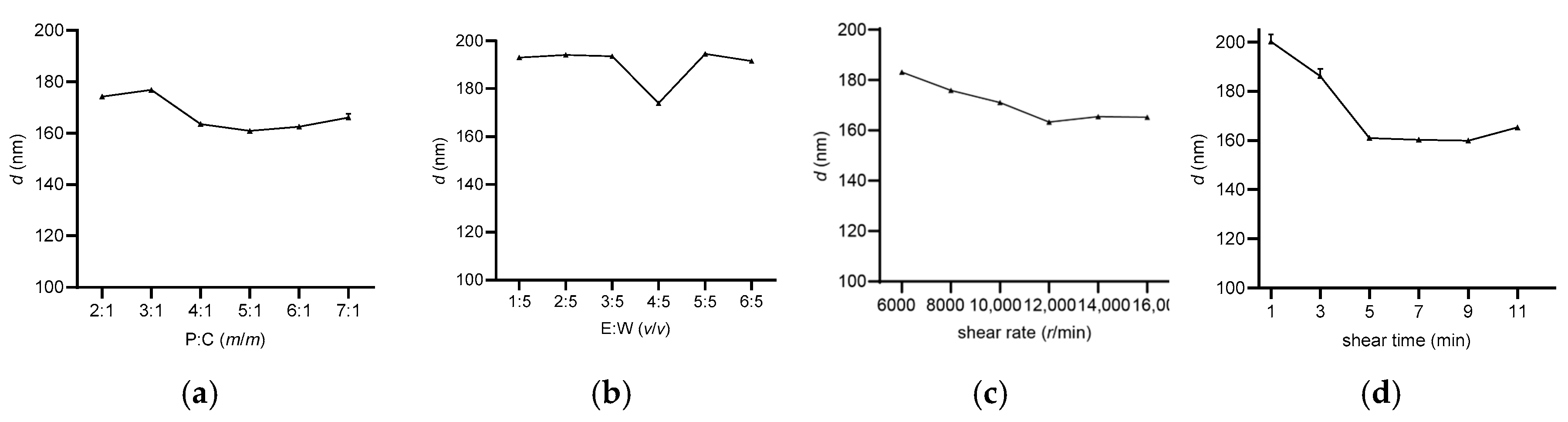 - Ren, H.; Zhou, N.; Yu, Q.; Yuan, C.; Hu, K.; Li, W.; Chen, L.; Wang, N. Co-preparation of Proanthocyanidin Nanoliposomes by ReverseEvaporation-Ultrasonic Microwave Synergistic Preparationand Its Stability and Antioxidant Activity Analysis. Sci. Technol. Food Ind. 2025, 46, 235–248. [Google Scholar] [CrossRef]