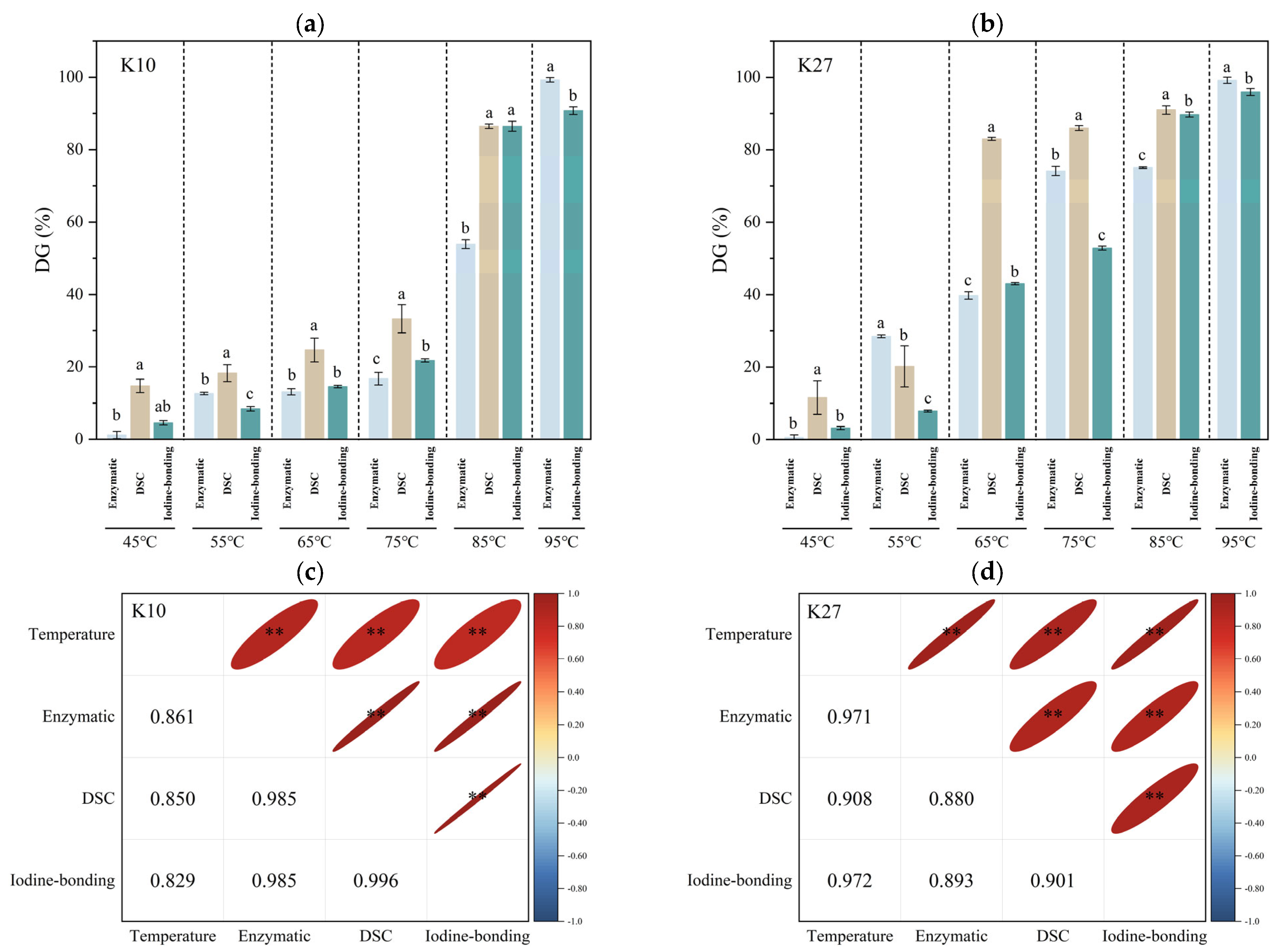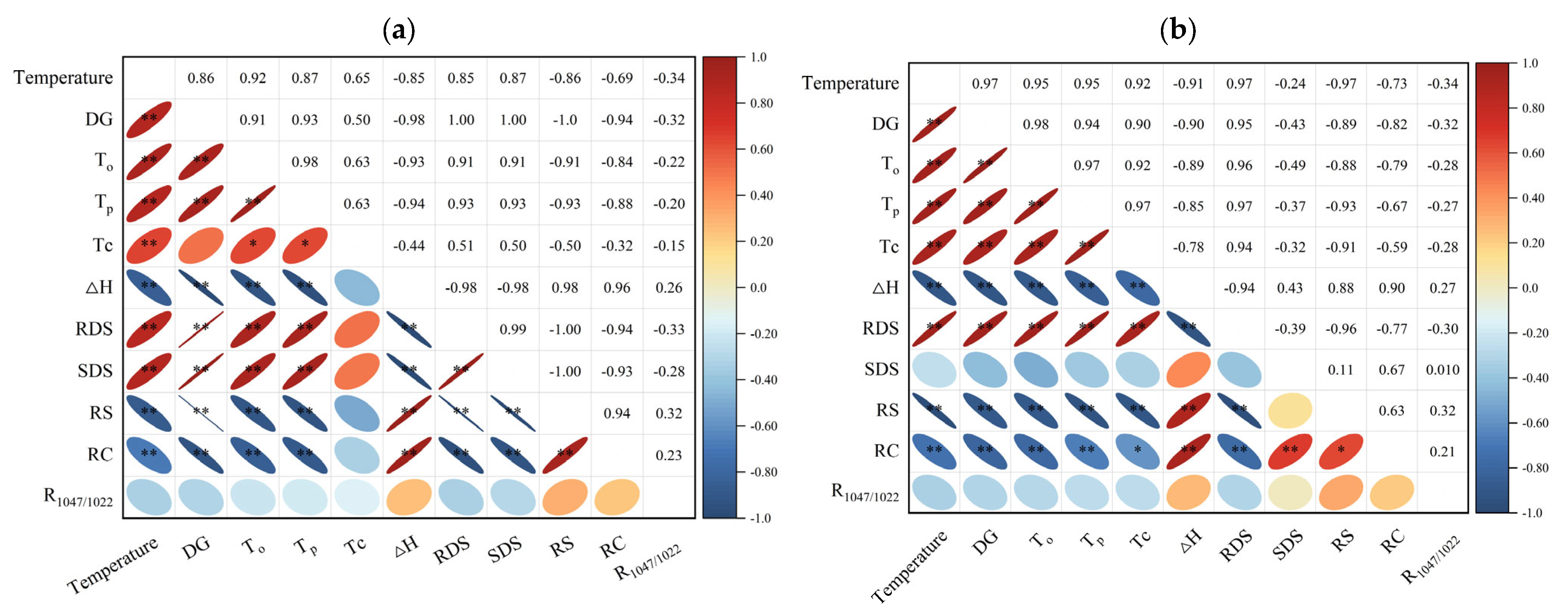 3.1. Starch DG Determined by Three Different Methods and Their Correlations