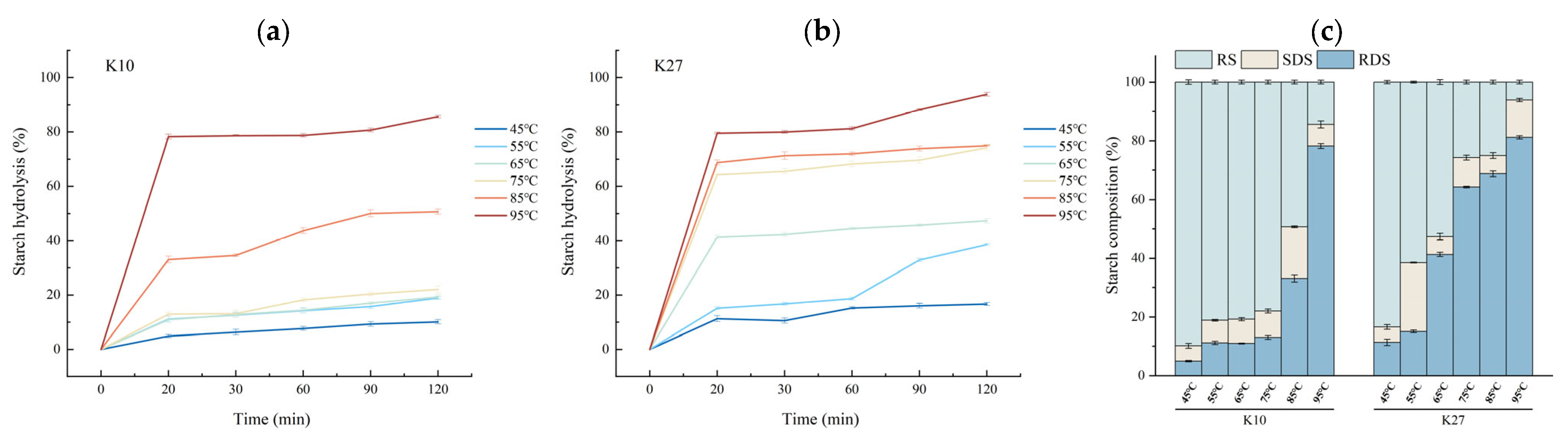 2.6.2. Digestive Properties of Kudzu Starch with Different DG