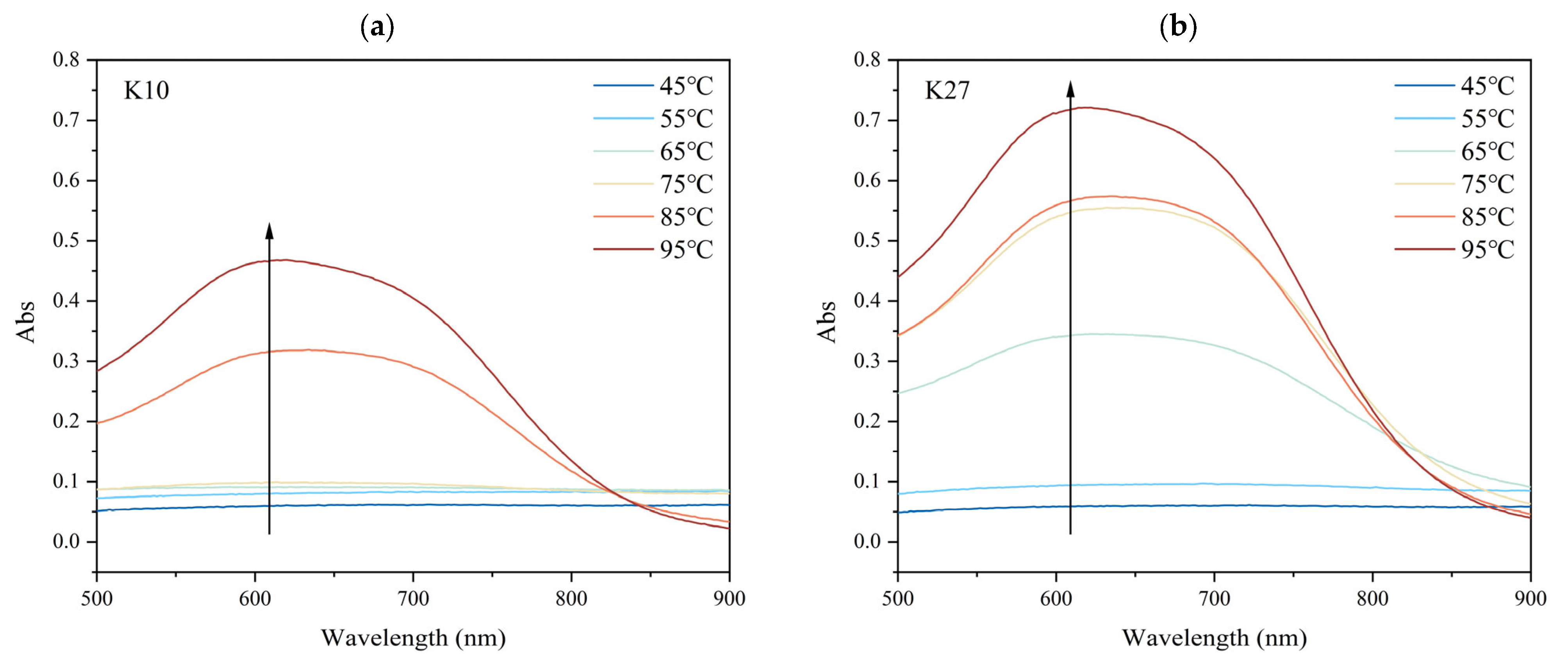 3.4. Effects of Different DG on the Iodine-Binding Capacity of Kudzu Starch