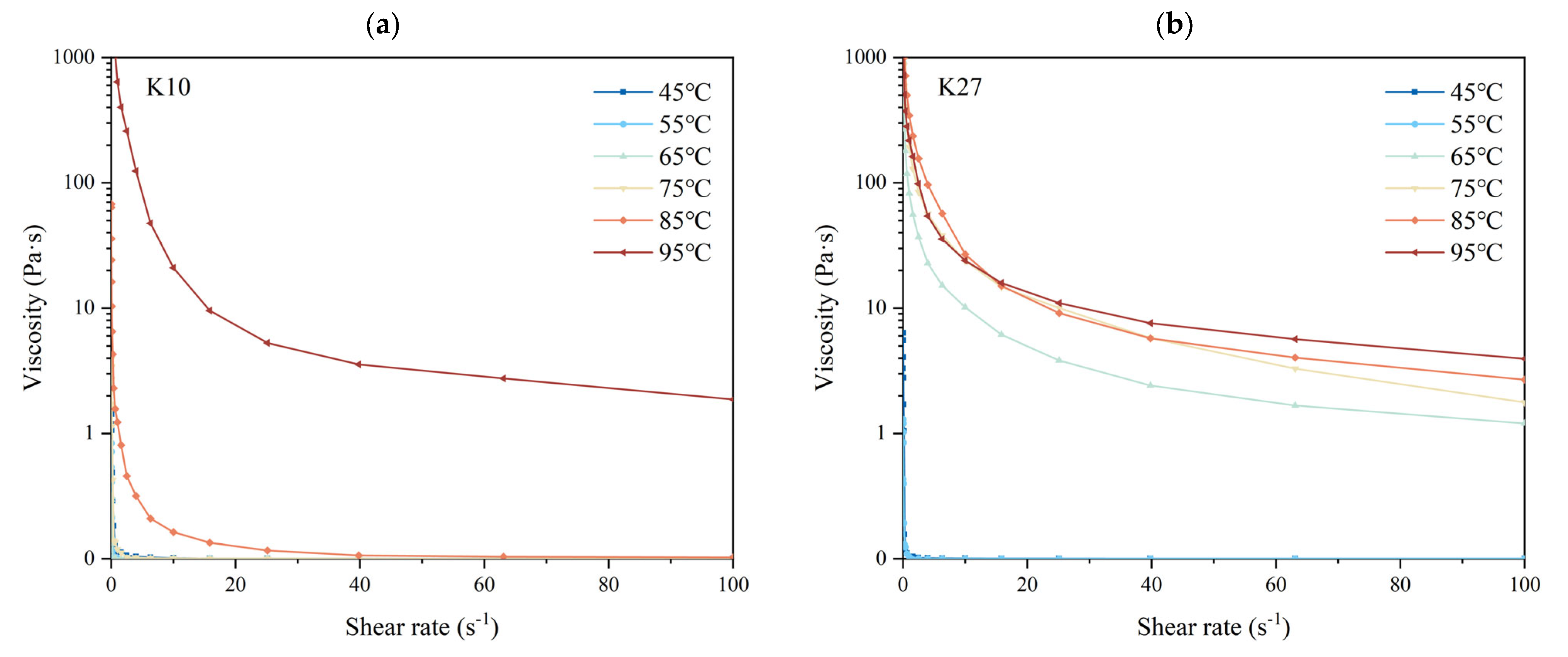3.8. Effects of Different DG on the Apparent Viscosity of Kudzu Starch